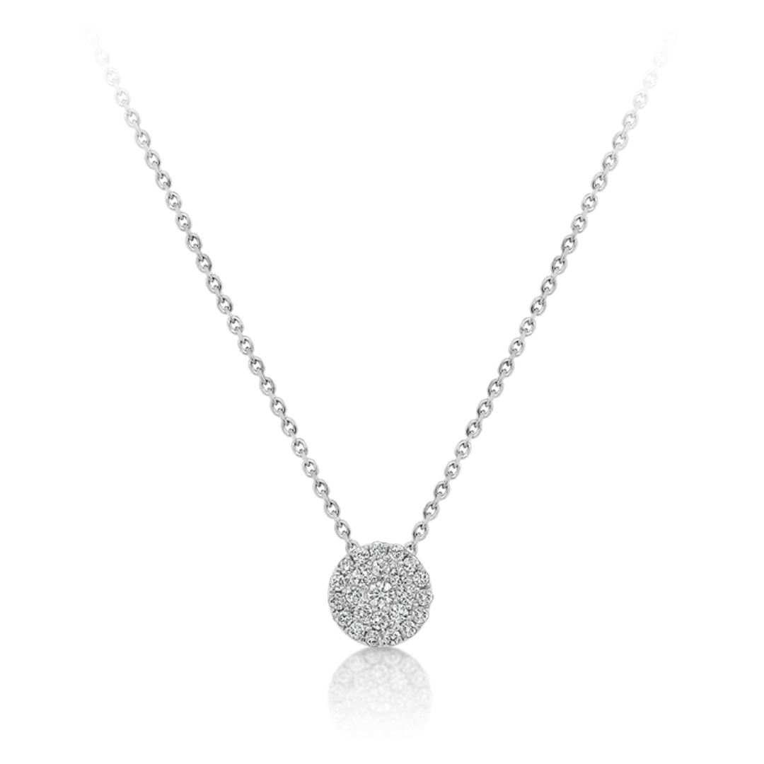 Lanț din aur alb de 18K și pandantiv rotund cu Diamante naturale Brilliant cut.