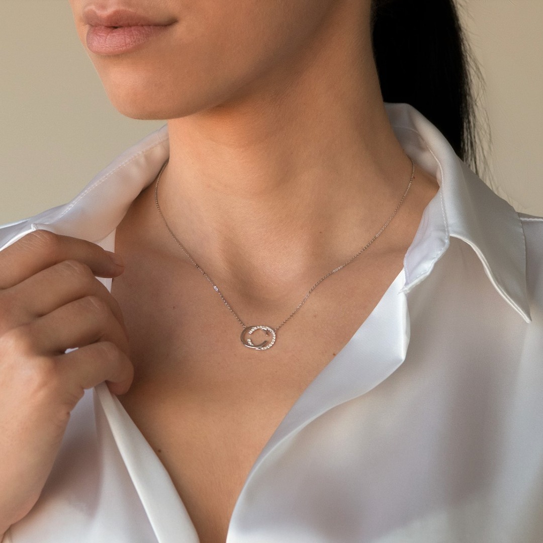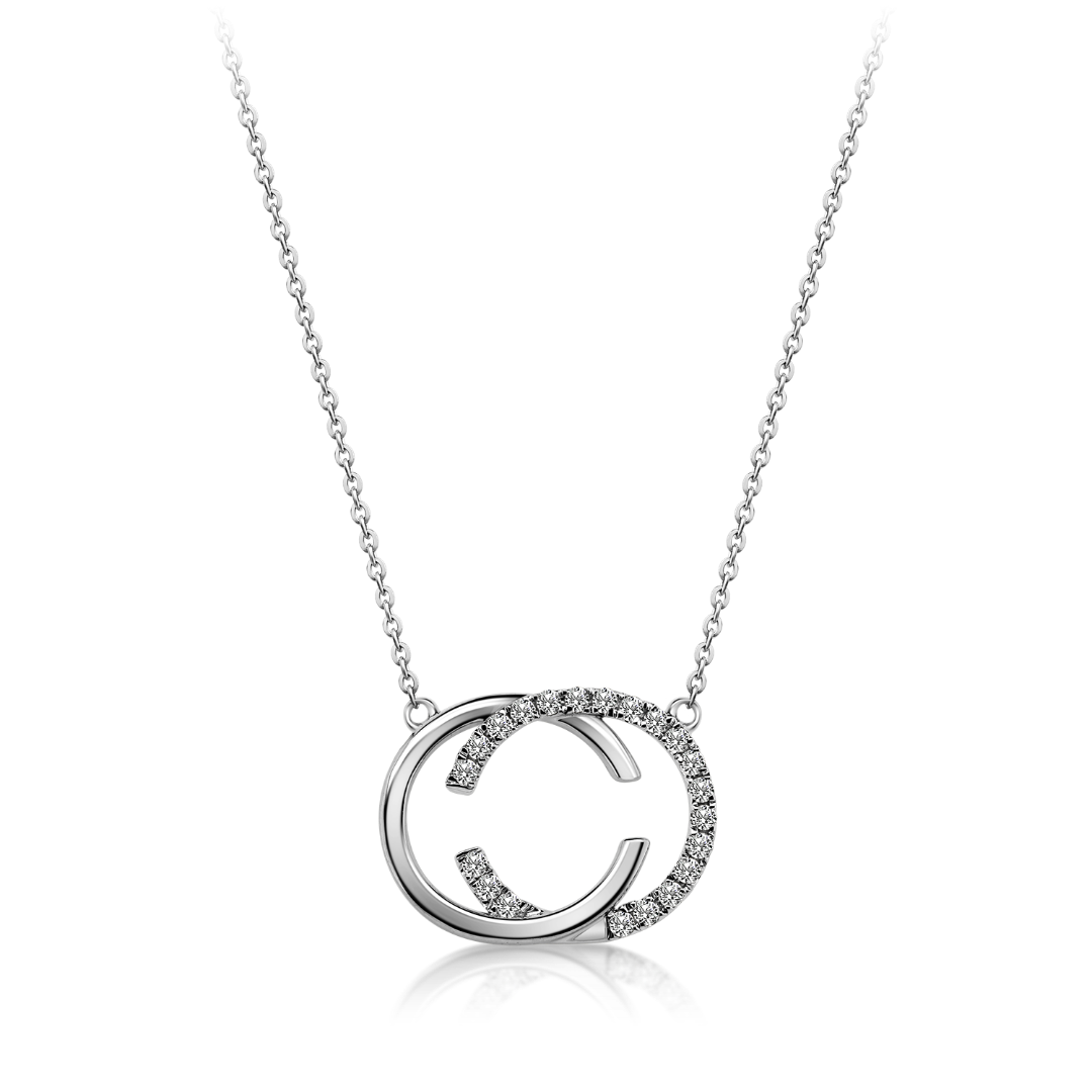 Lanț din aur alb de 18K și pandantiv încrustat cu Diamante naturale.