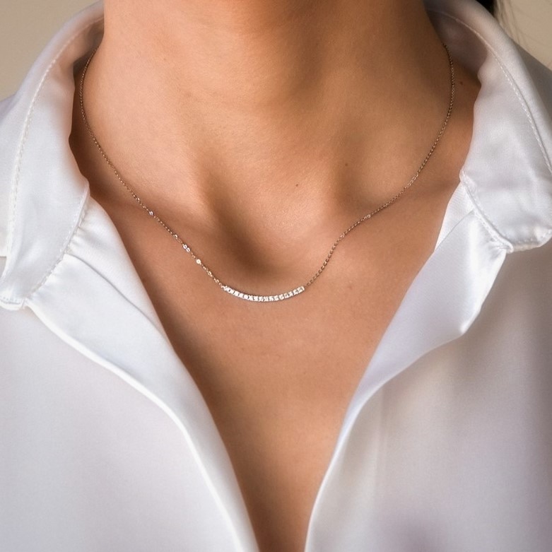 Lanț din aur alb de 18K și pandantiv cu Diamante