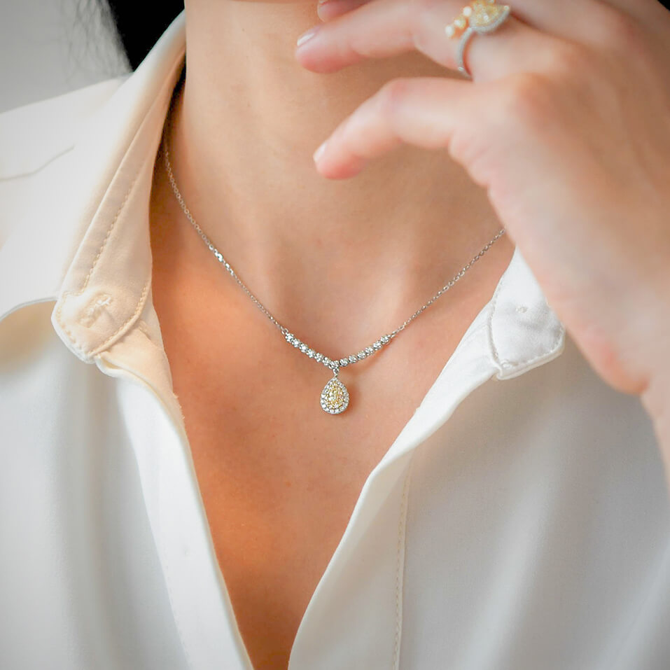 Lanț din aur alb de 18K și pandantiv cu Diamante naturale