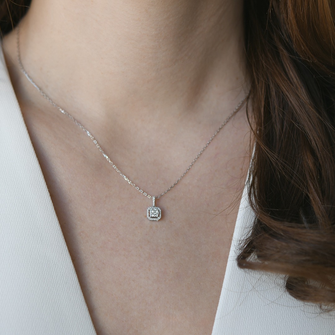 Lanț din aur alb de 18K și pandantiv cu Diamante naturale