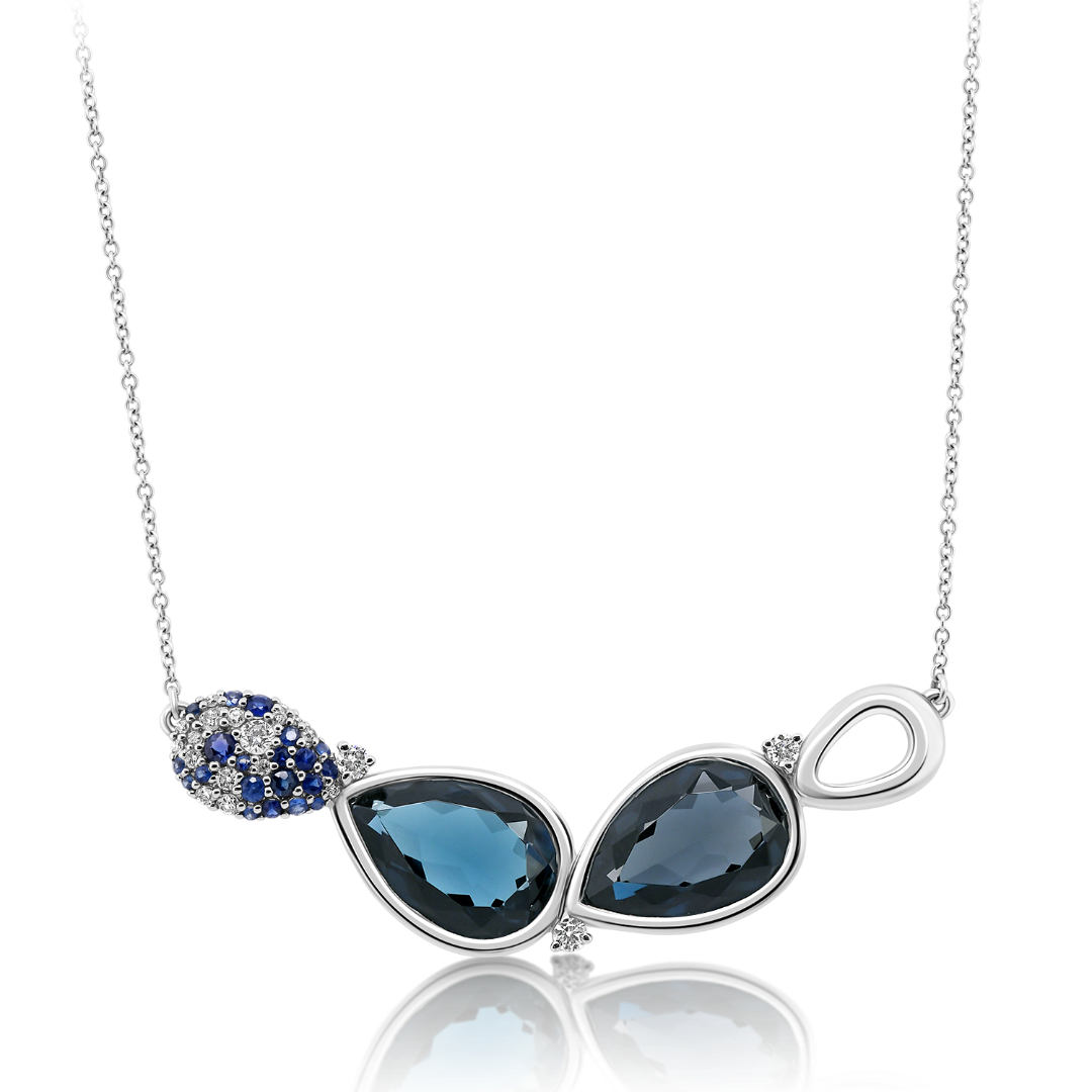 Lanț din aur alb de 18K și pandantiv cu pietre semiprețioase și Diamante naturale.