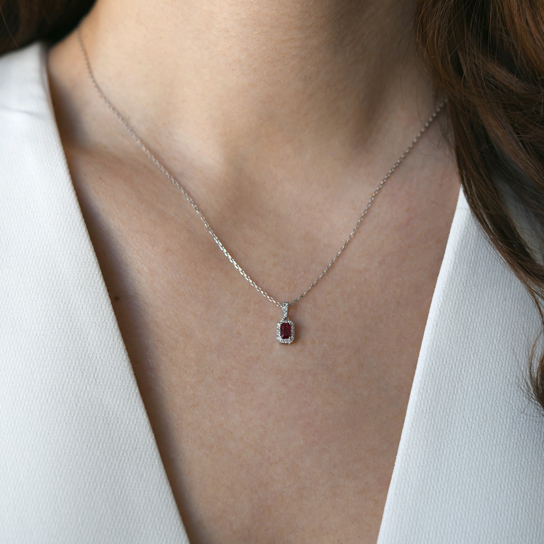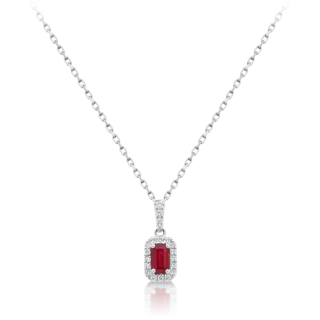 Lanț din aur alb de 18K și pandantiv cu un Rubin de 0.421ct și Diamante Round Brilliant de 0.103ct.
