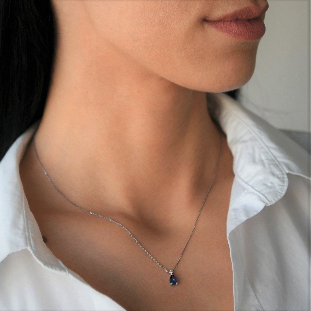 Lanț din aur alb de 14K și pandantiv cu Diamant natural și Safir albastru