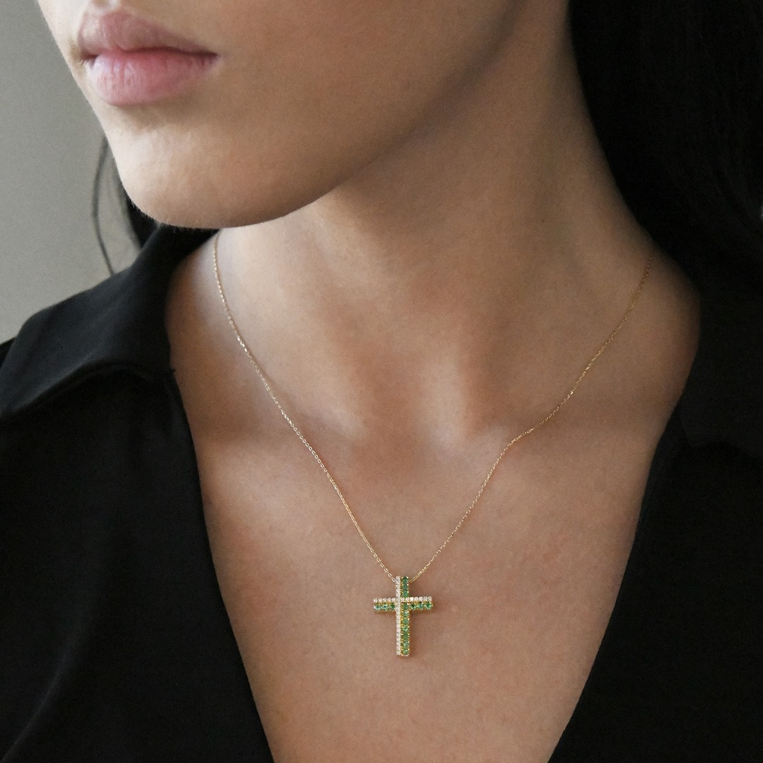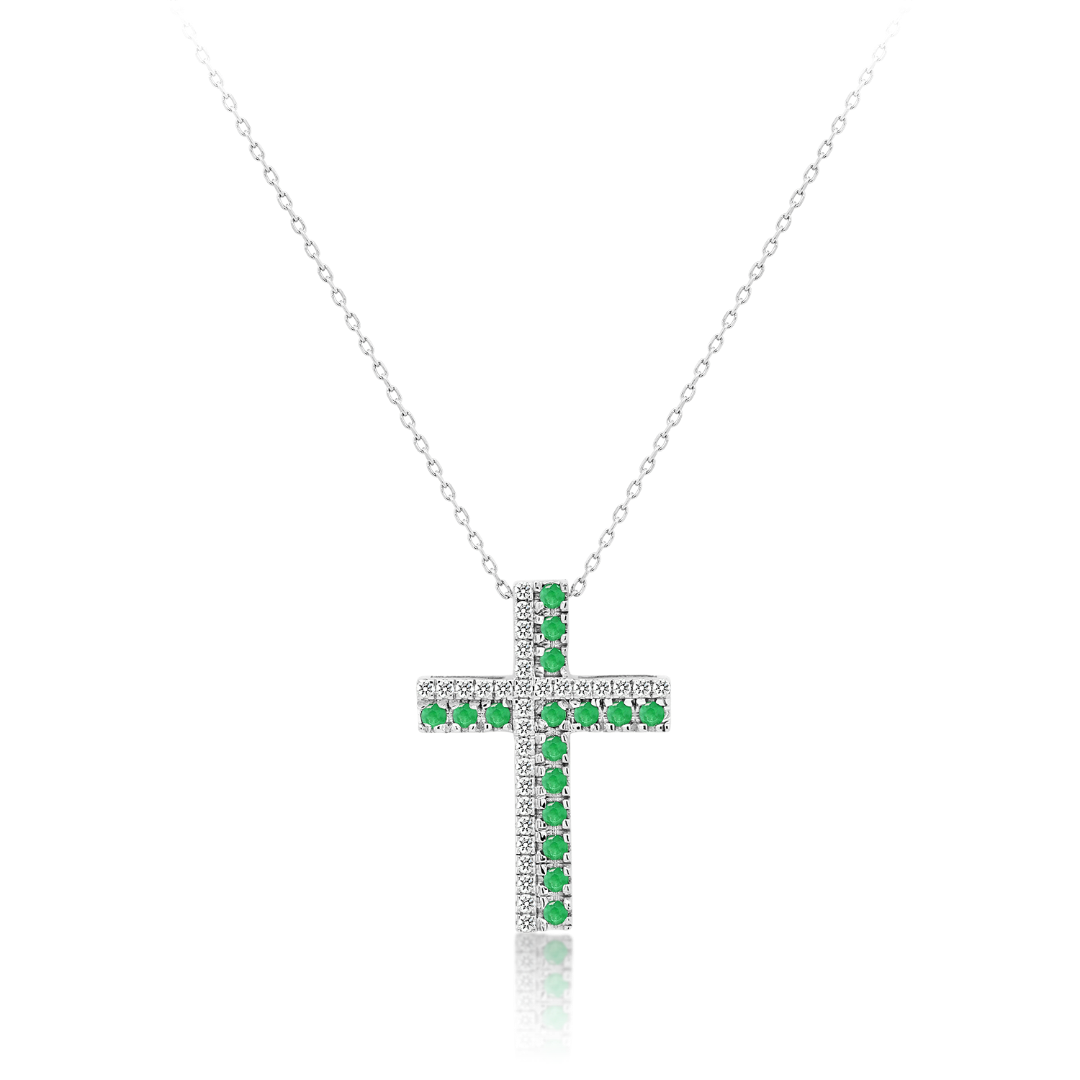 Lanț din aur alb de 18K și pandantiv cu Smaralde și Diamante naturale