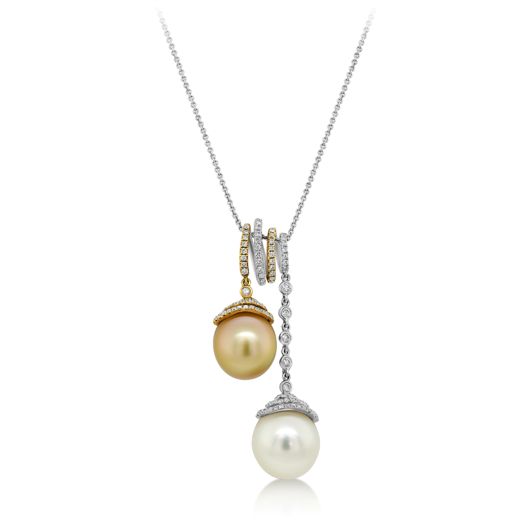 Lanț din aur alb de 18K și pandantiv cu Diamante și Perle naturale