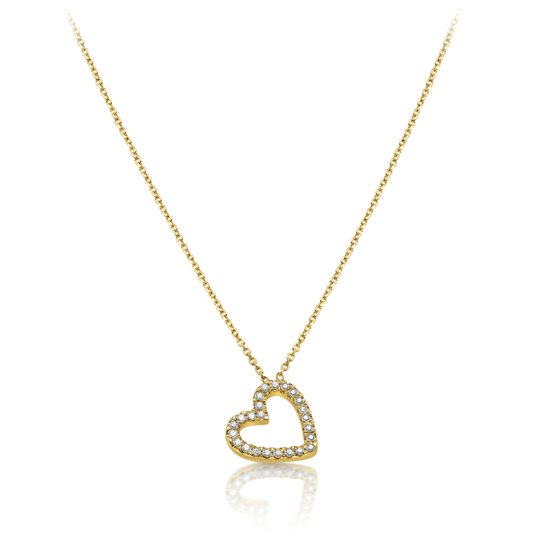 Lanț din aur galben de 18K și pandantiv inimă cu Diamante naturale Round Brilliant de 0.12ct.