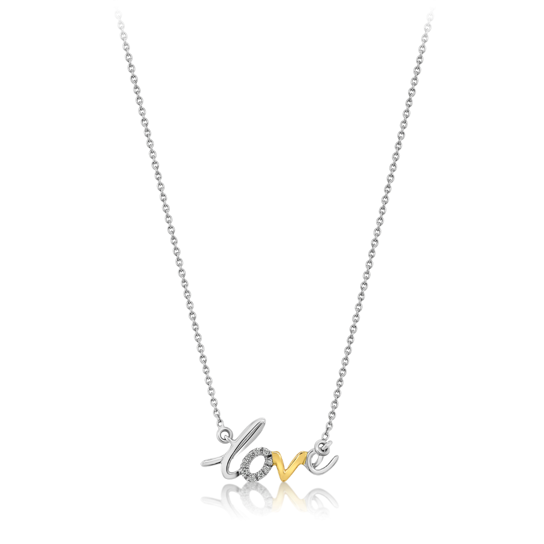 Lanț din aur alb de 18K și pandantiv 'Love' cu Diamante Round Brilliant de 0.03ct.