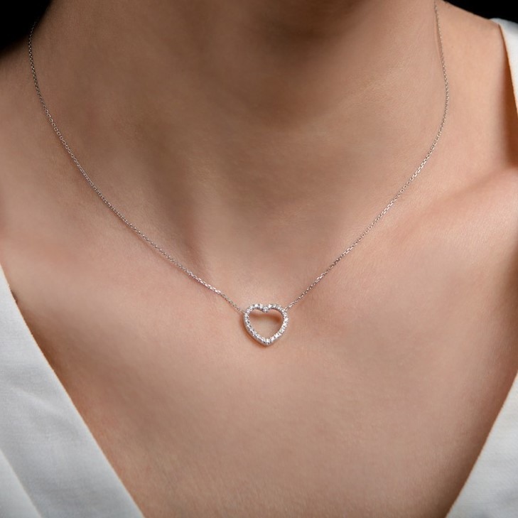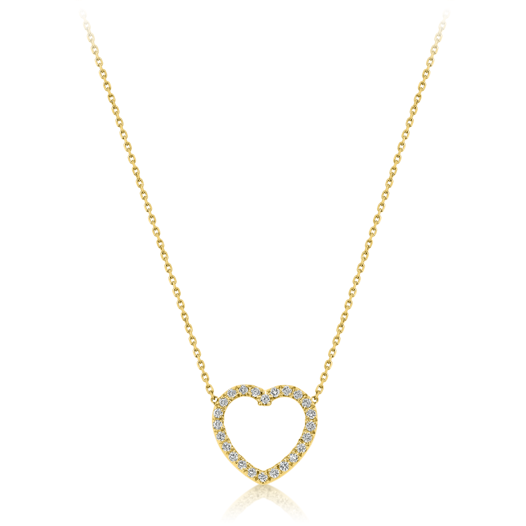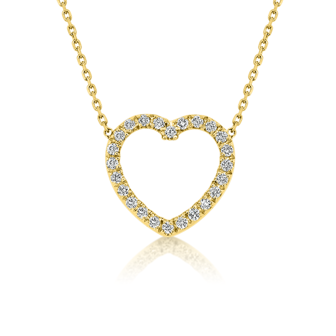 Lanț din aur galben de 18K și pandantiv inimă încrustat cu Diamante naturale.