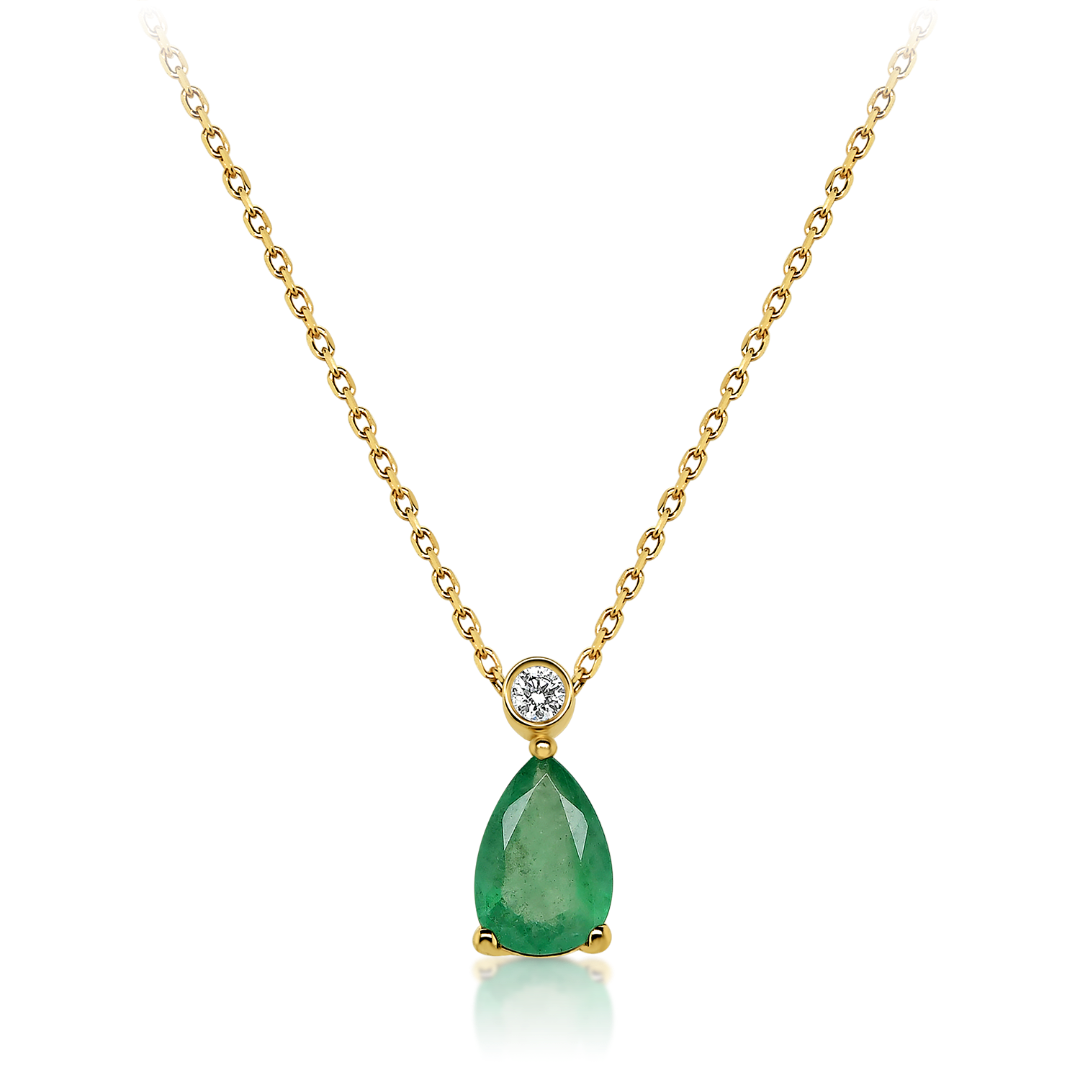 Lanț din aur galben de 14K și pandantiv cu Smarald și Diamant natural