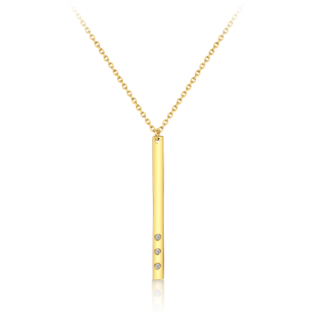 Lanț din aur galben de 14K și pandantiv cu 3 Diamante naturale Round Brilliant de 0.015ct.