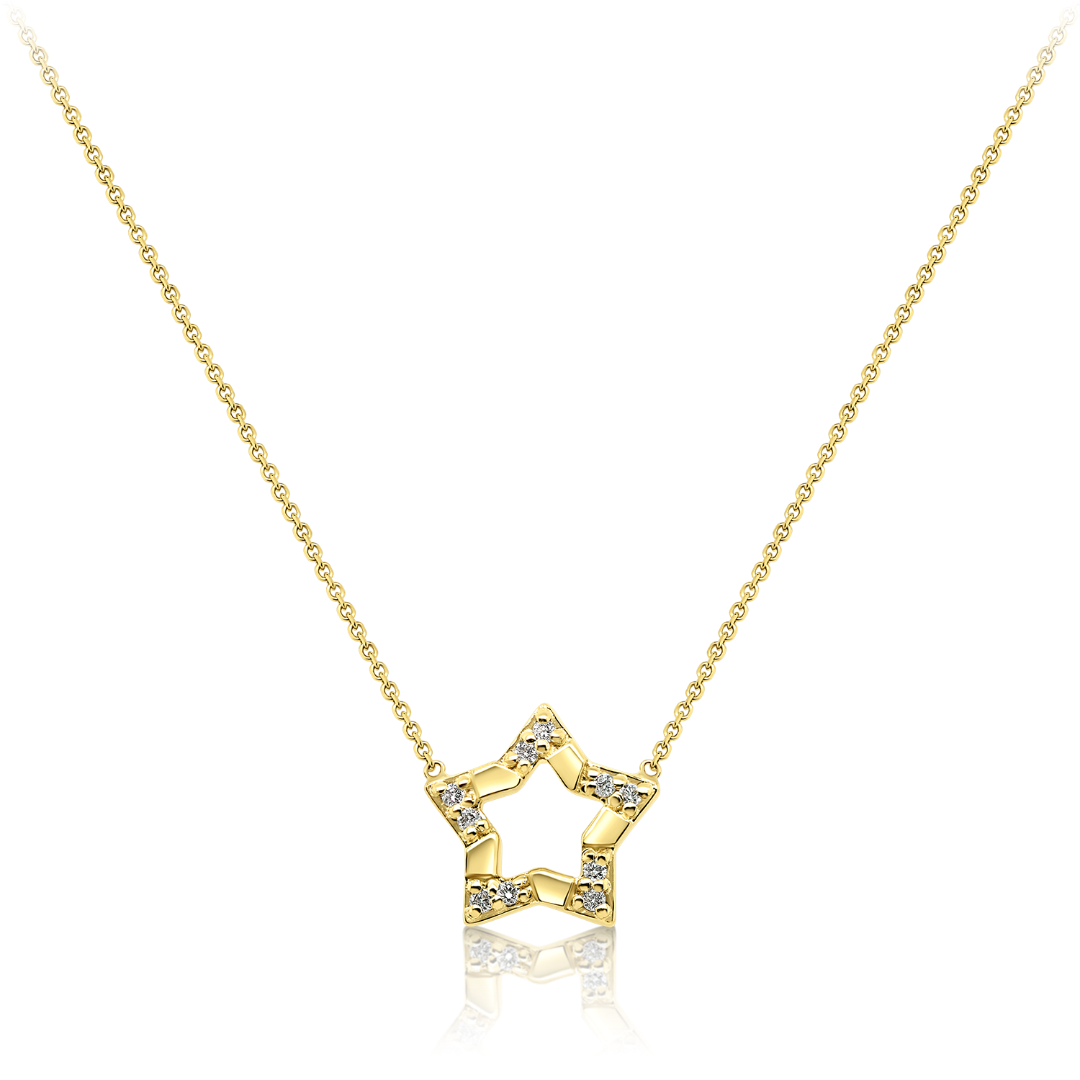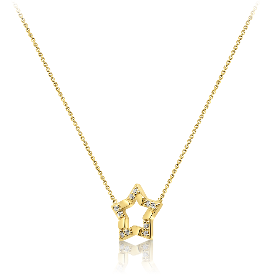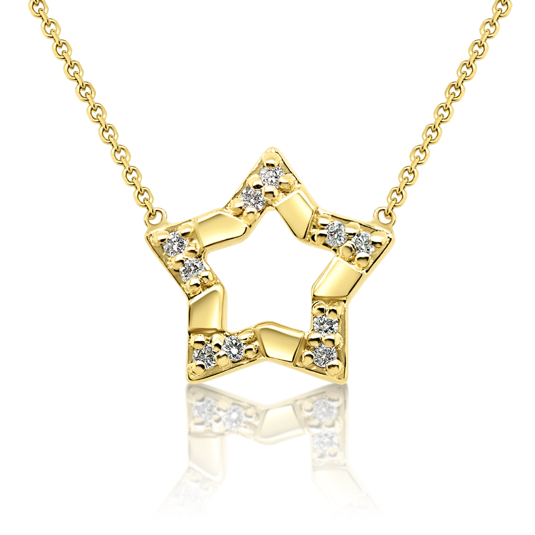 Lanț din aur galben de 14K și pandantiv stea cu Diamante naturale Round Brilliant.