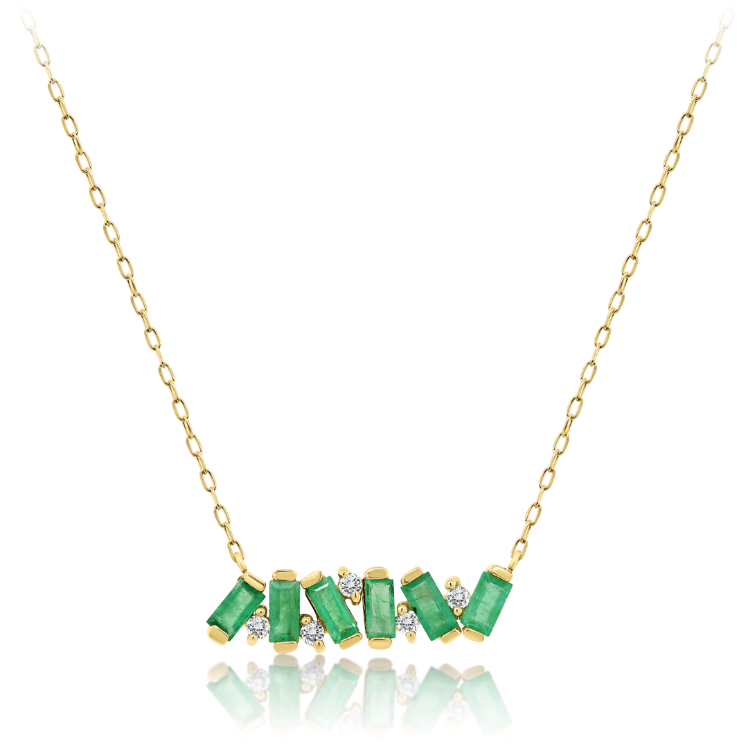 Lanț din aur galben de 14K și pandantiv cu Smaralde și Diamante naturale.