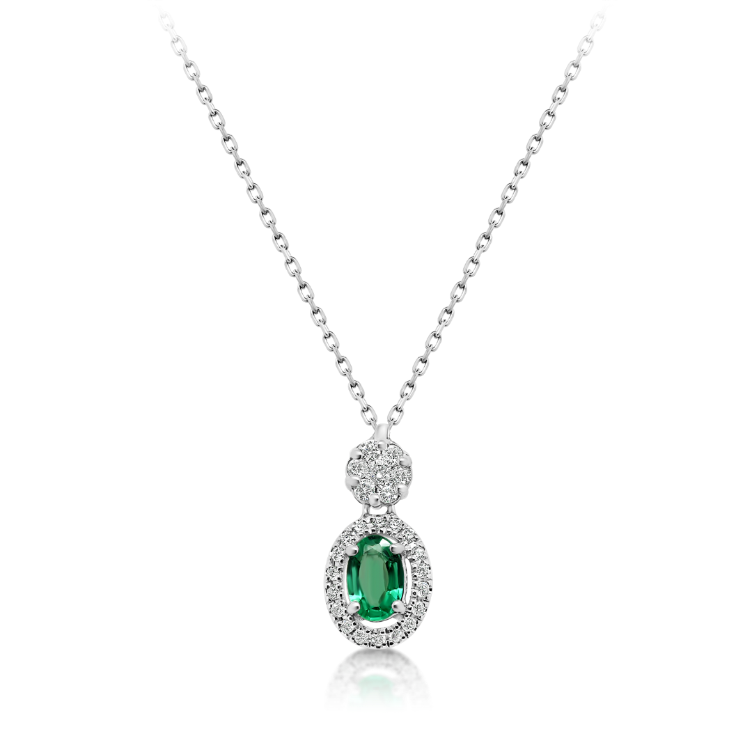 Lanț din aur alb de 18K și pandantiv cu Smarald și Diamante naturale