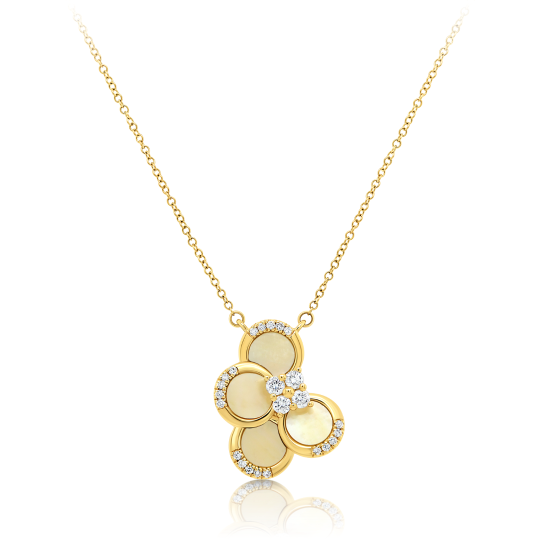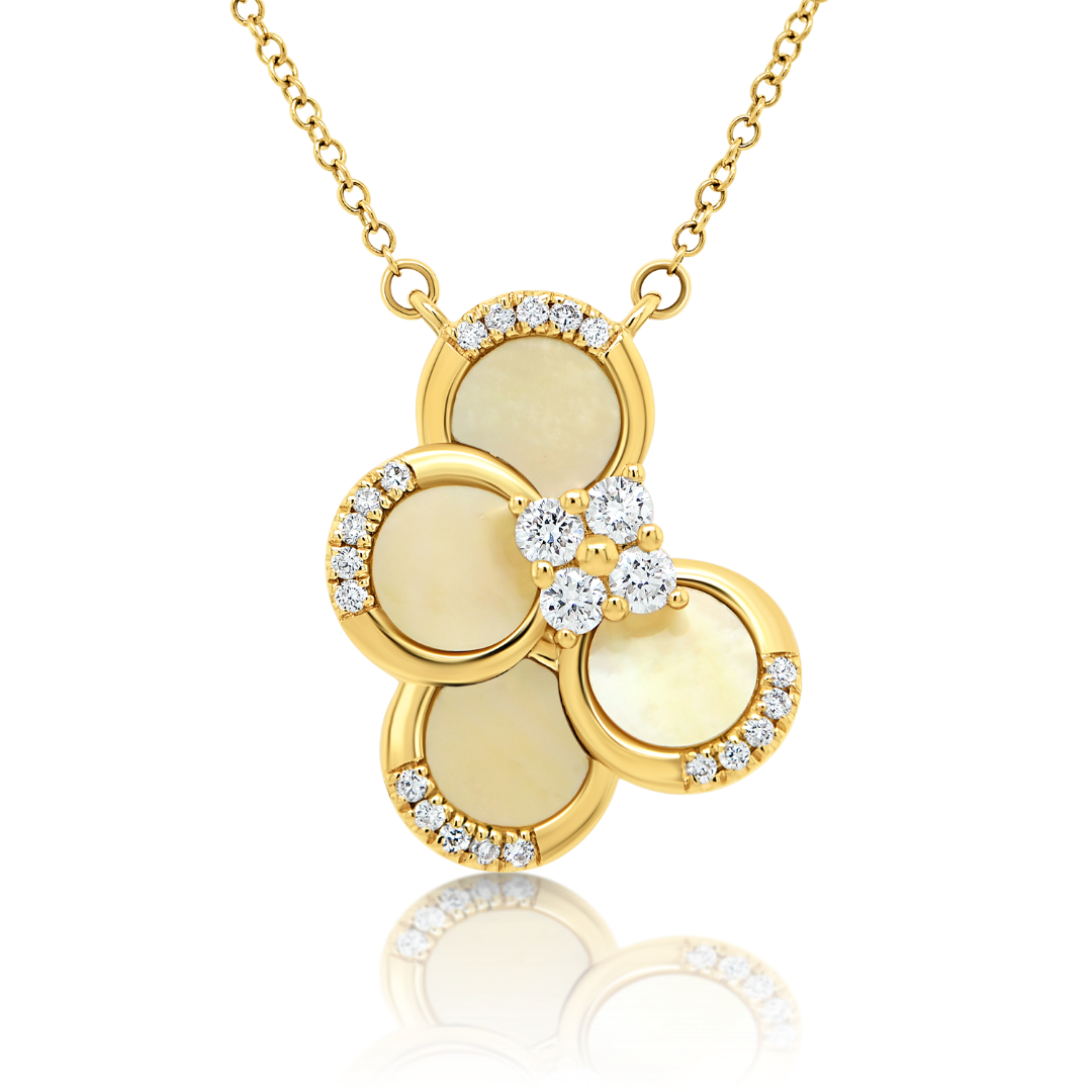 Lanț din aur galben de 18K și pandantiv cu Sidef și Diamante naturale.
