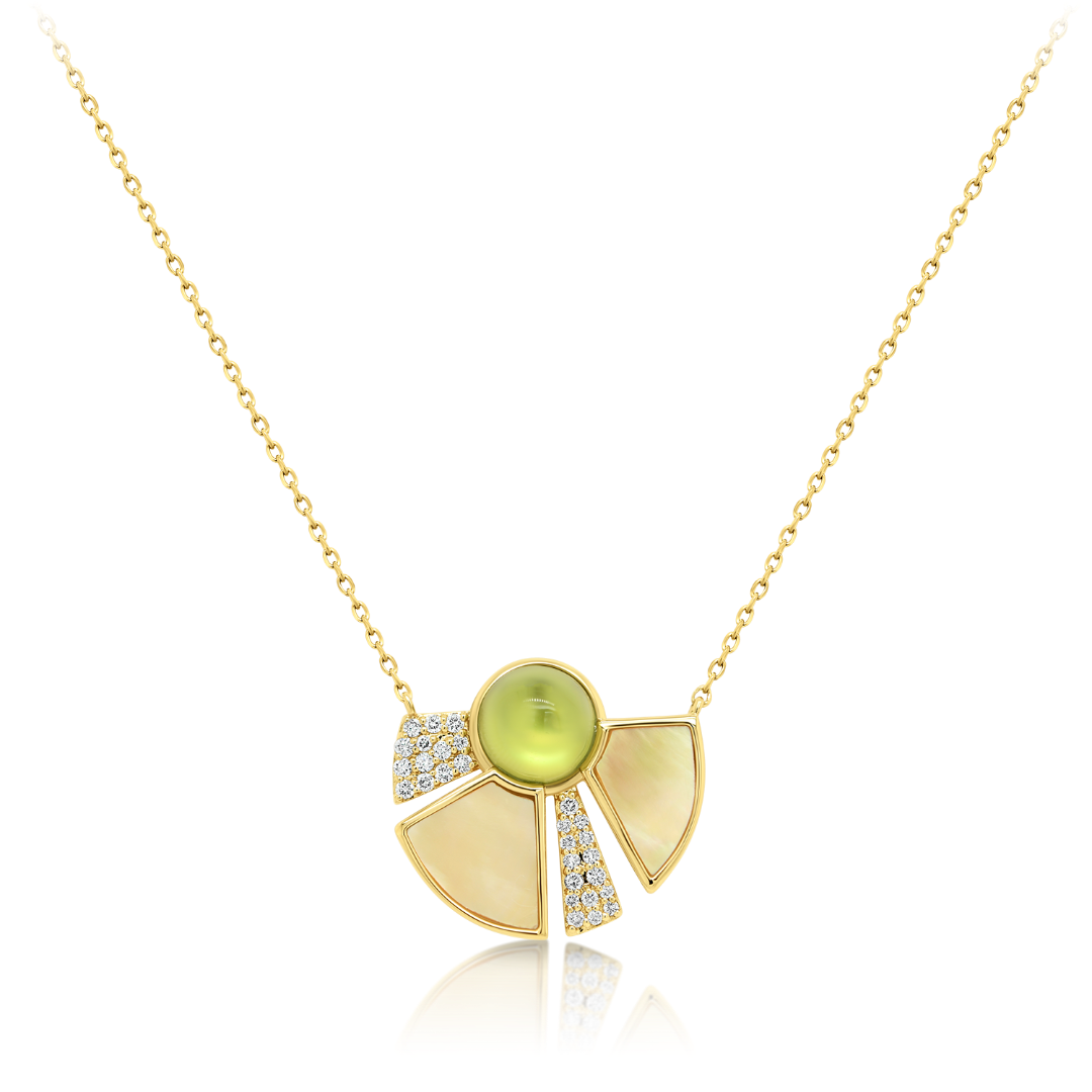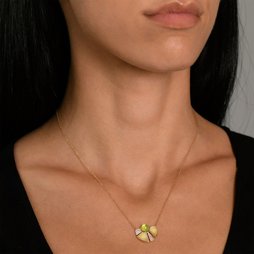 Lant din aur galben de 18K si pandantiv cu Sidef si Diamante naturale.
