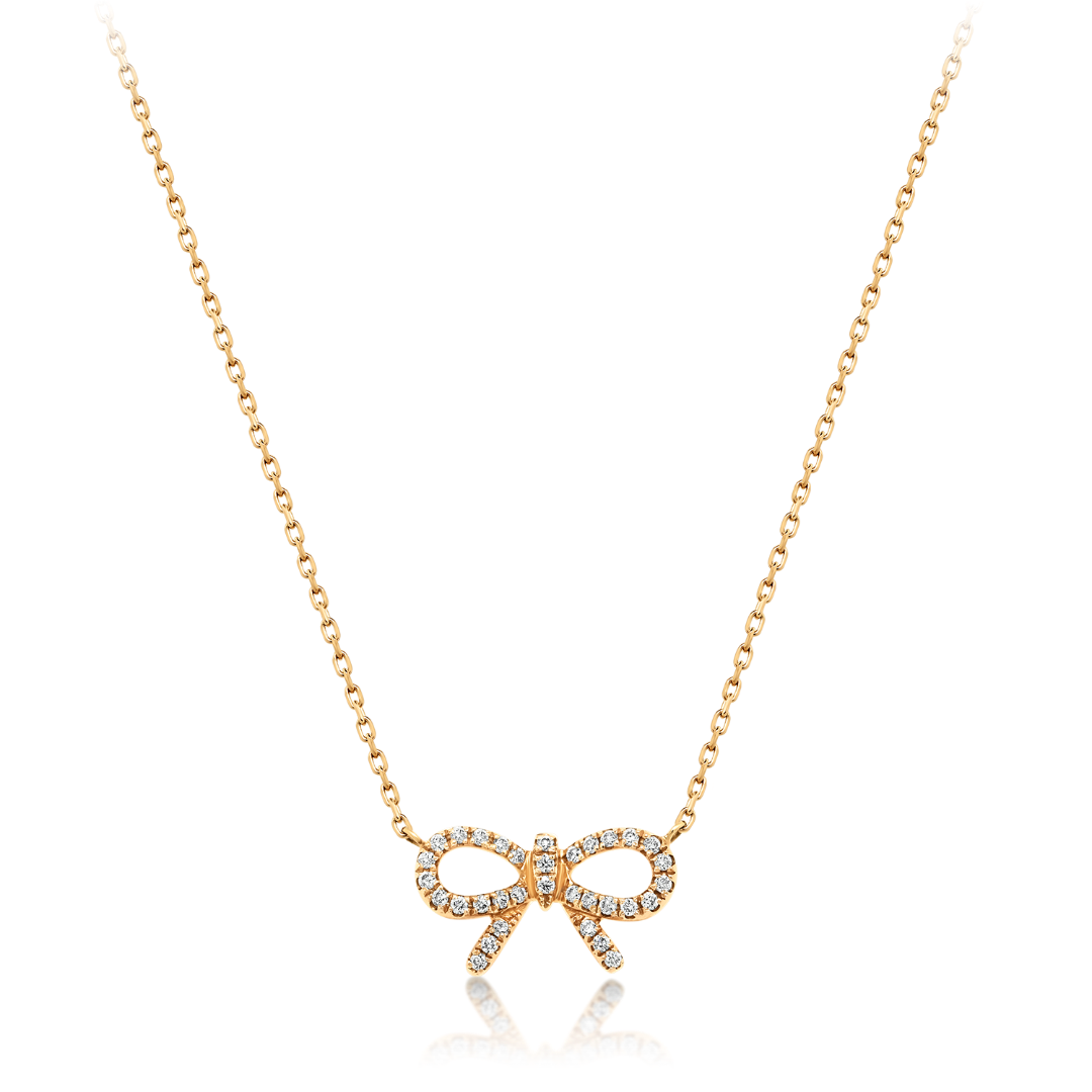 Lanț din aur roz de 18K și pandantiv fundiță cu Diamante naturale.