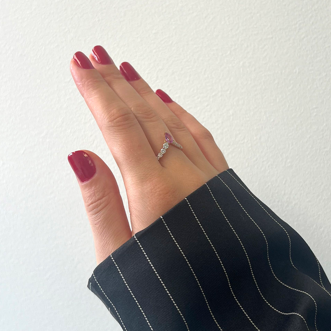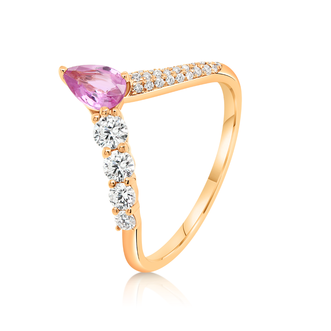 Inel din aur roz de 18K, cu un Safir Fancy de 0.40ct și Diamante naturale cu o greutate totală de 0.321ct.