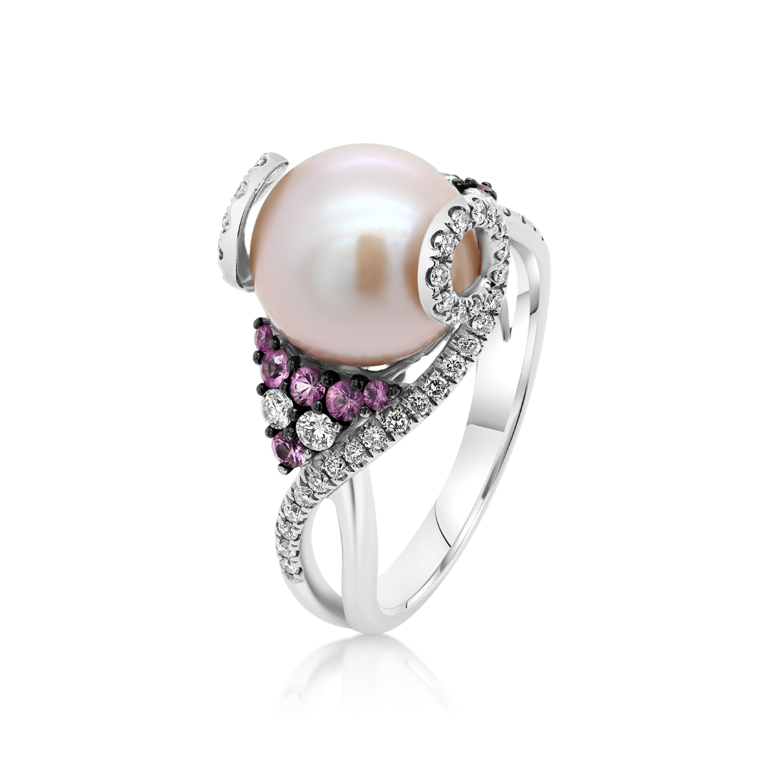 Inel din aur alb de 18K cu Perlă și Diamante naturale cu o greutate de  0.34ct.