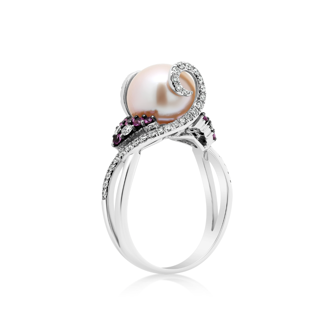 Inel din aur alb de 18K cu Perlă și Diamante naturale