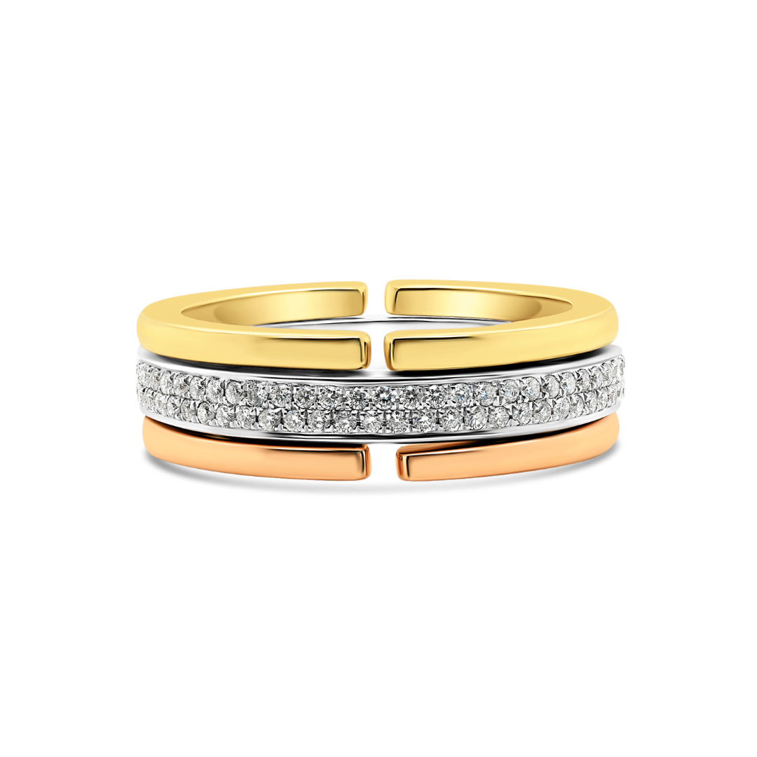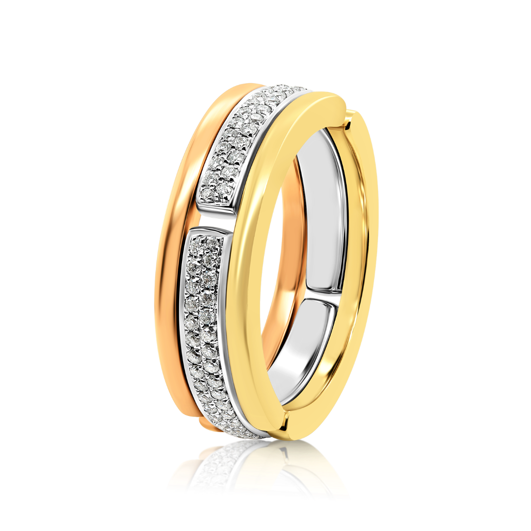 Inel cu design inedit din aur galben, alb și roz de 18K, încrustat cu 114 Diamante Round Brilliant cu o greutate totală de 0.51ct.