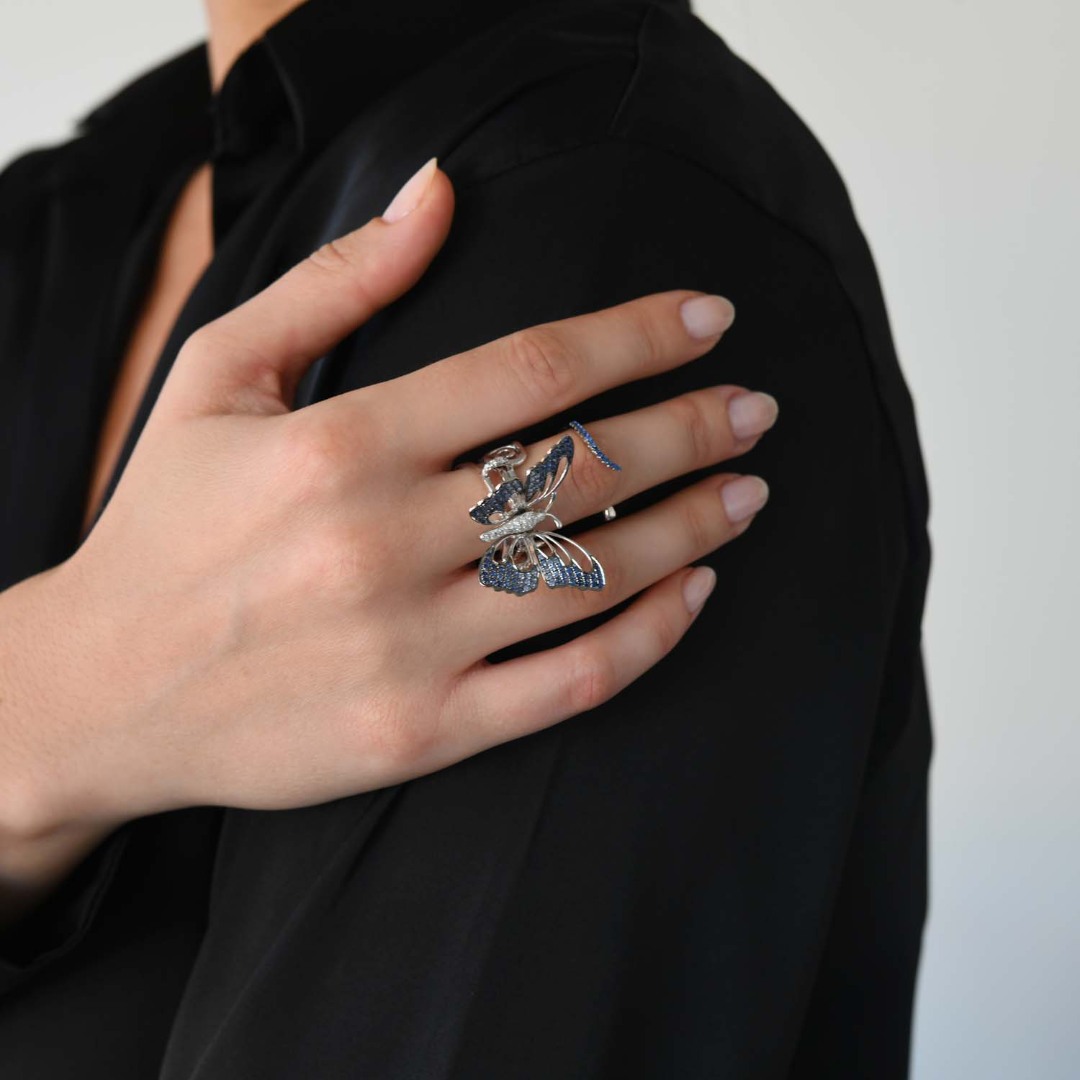 Inel din aur alb de 18K cu Safire și Diamante naturale