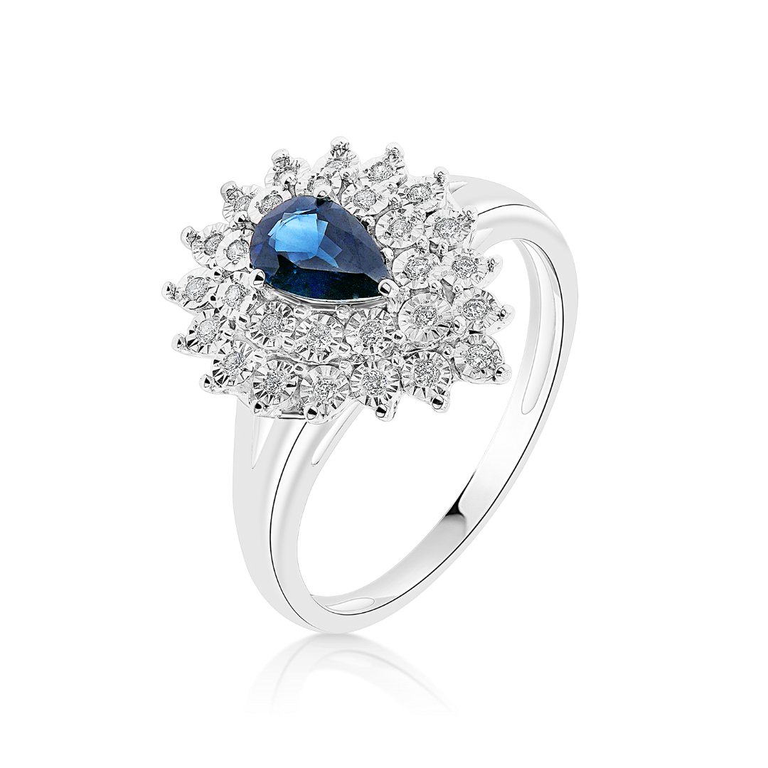 Inel aur alb de 18K cu Safir și Diamante naturale