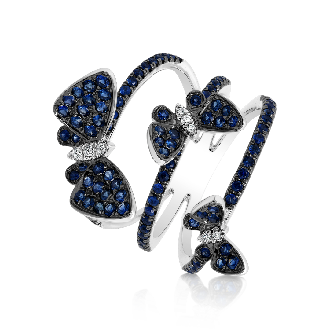 Inel din aur alb de 18K cu Safire albastre și Diamante naturale