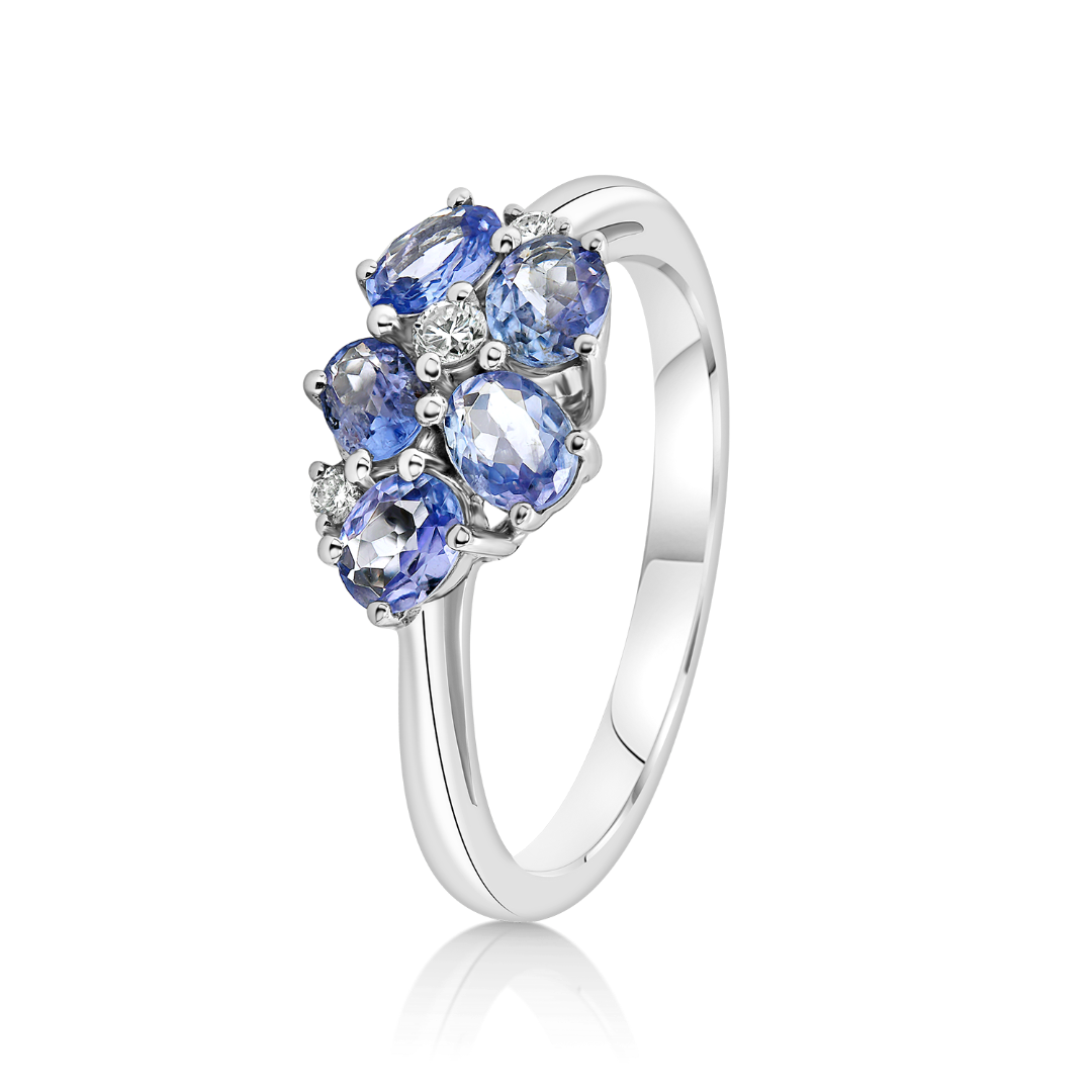 Inel din aur alb de 18K cu Diamante și Tanzanite
