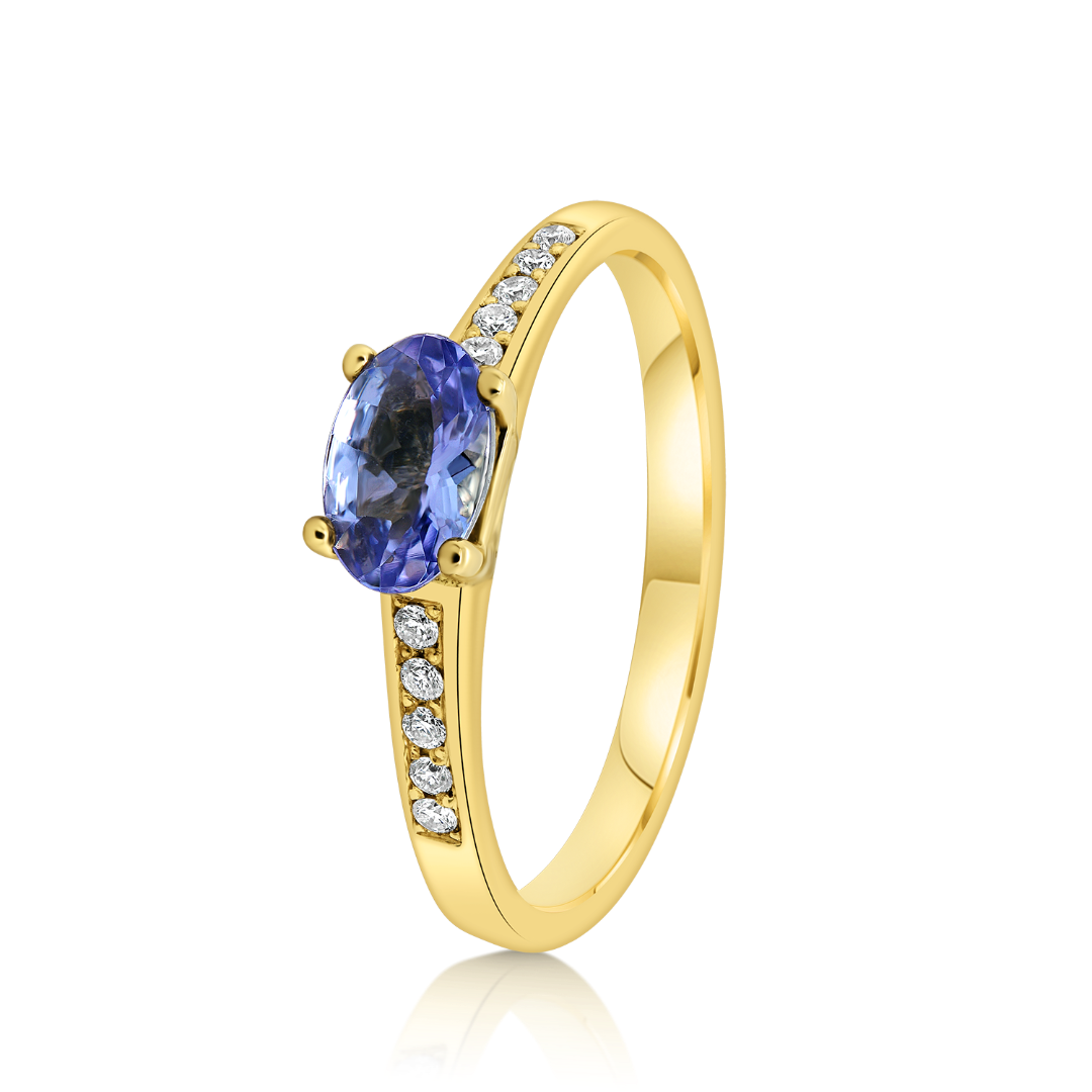 Inel din aur galben de 18K, încrustat cu Diamant și Tanzanit
