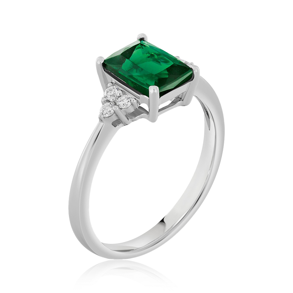 Inel din aur alb de 18K, cu Diamante și Turmalin