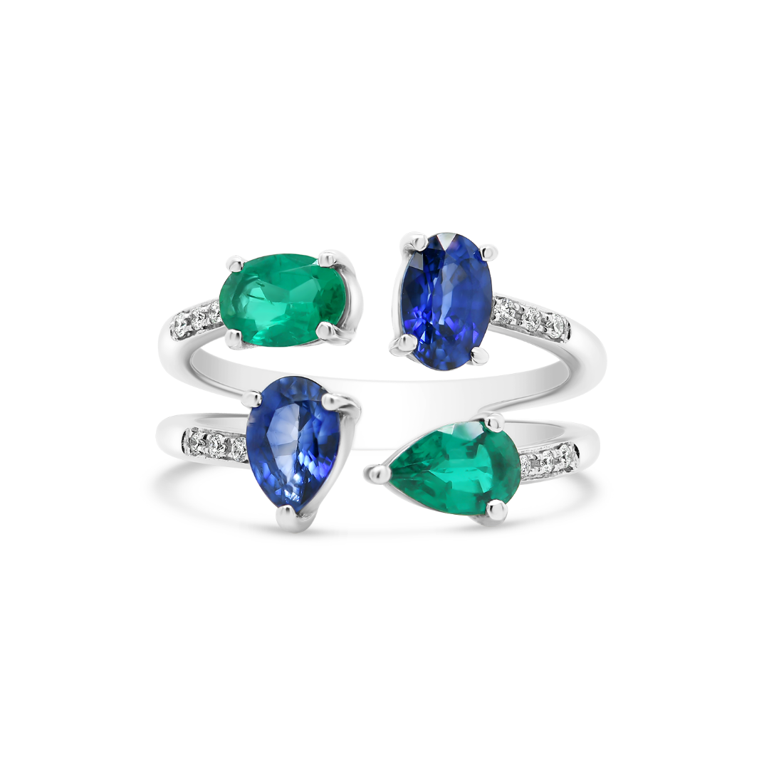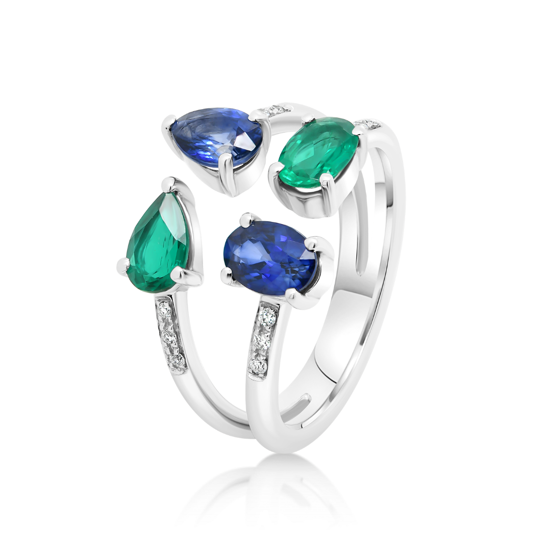 Inel din aur alb de 18K cu Safire, Smaralde și Diamante naturale