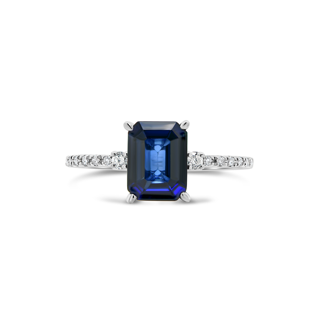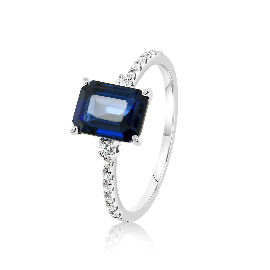 Inel din aur alb de 14K, cu Safir albastru și Diamante naturale