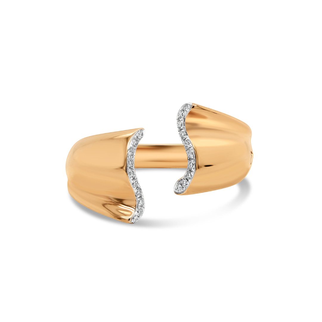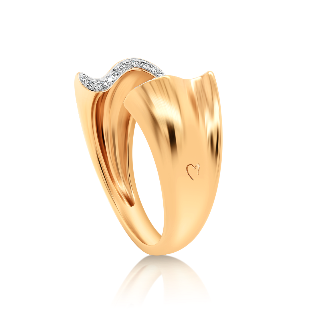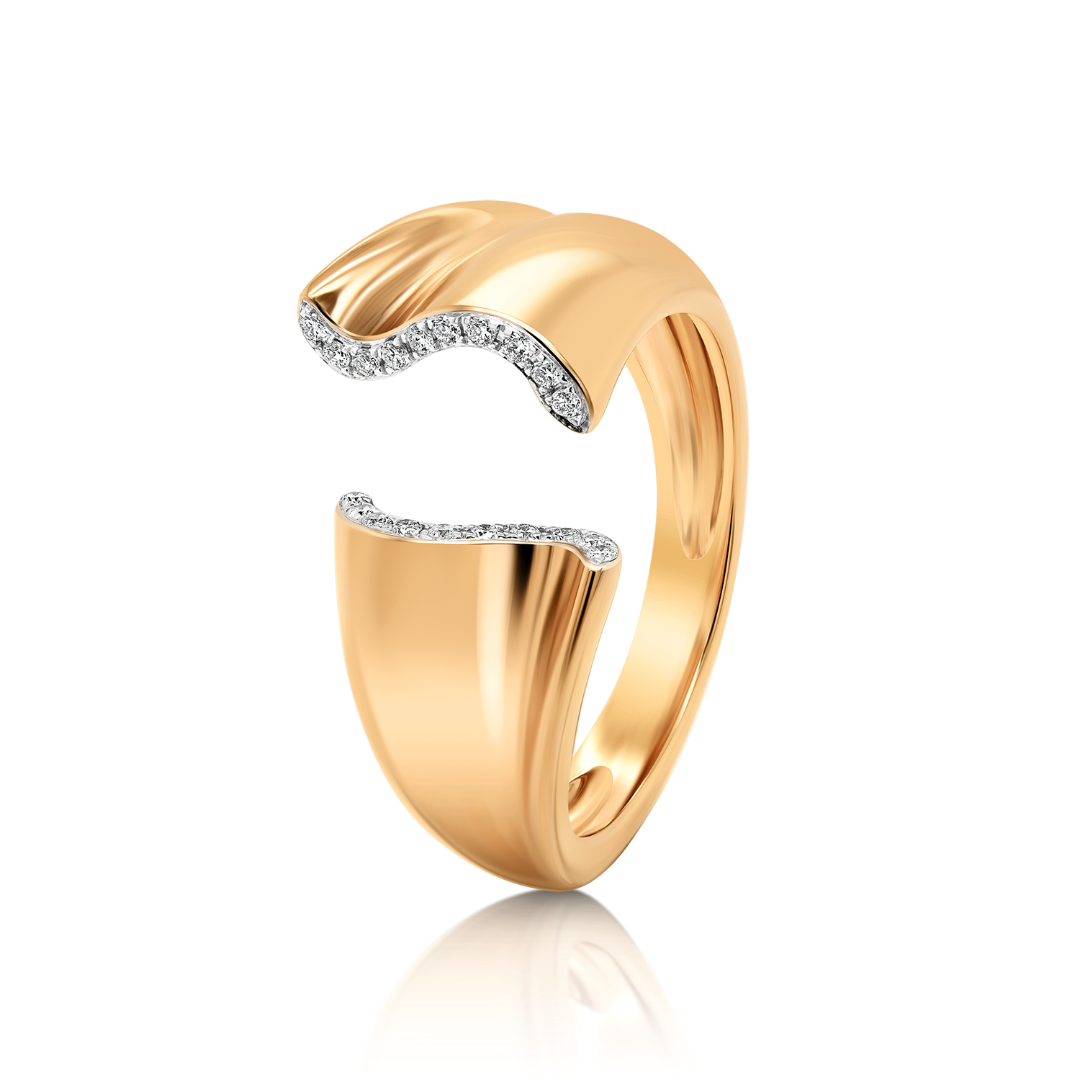 Inel din aur roz de 18K, încrustat cu Diamante naturale de 0.08ct. și elemente cu Rodiu alb.