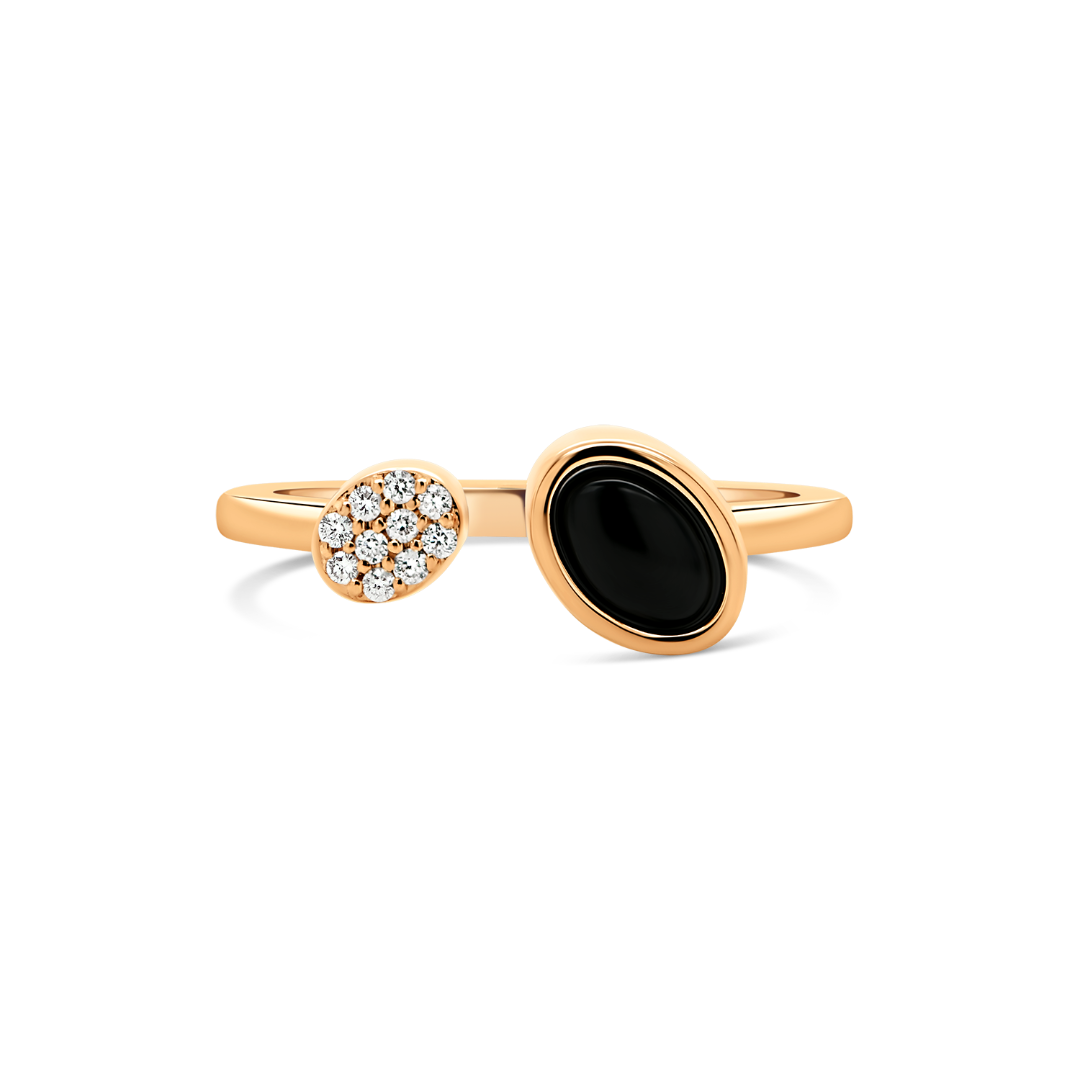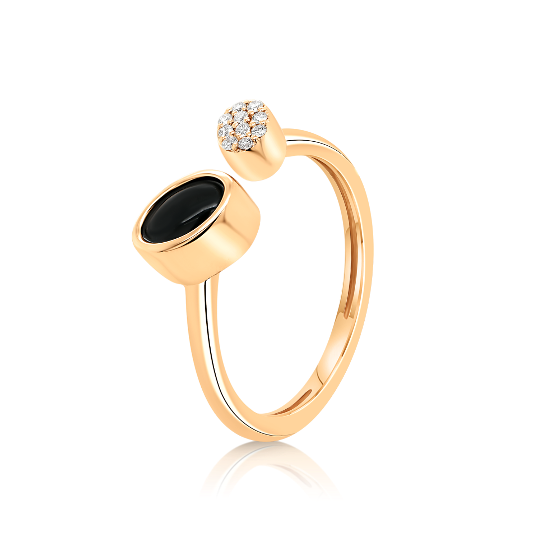 Inel din aur roz de 18K cu Diamante naturale și Onix