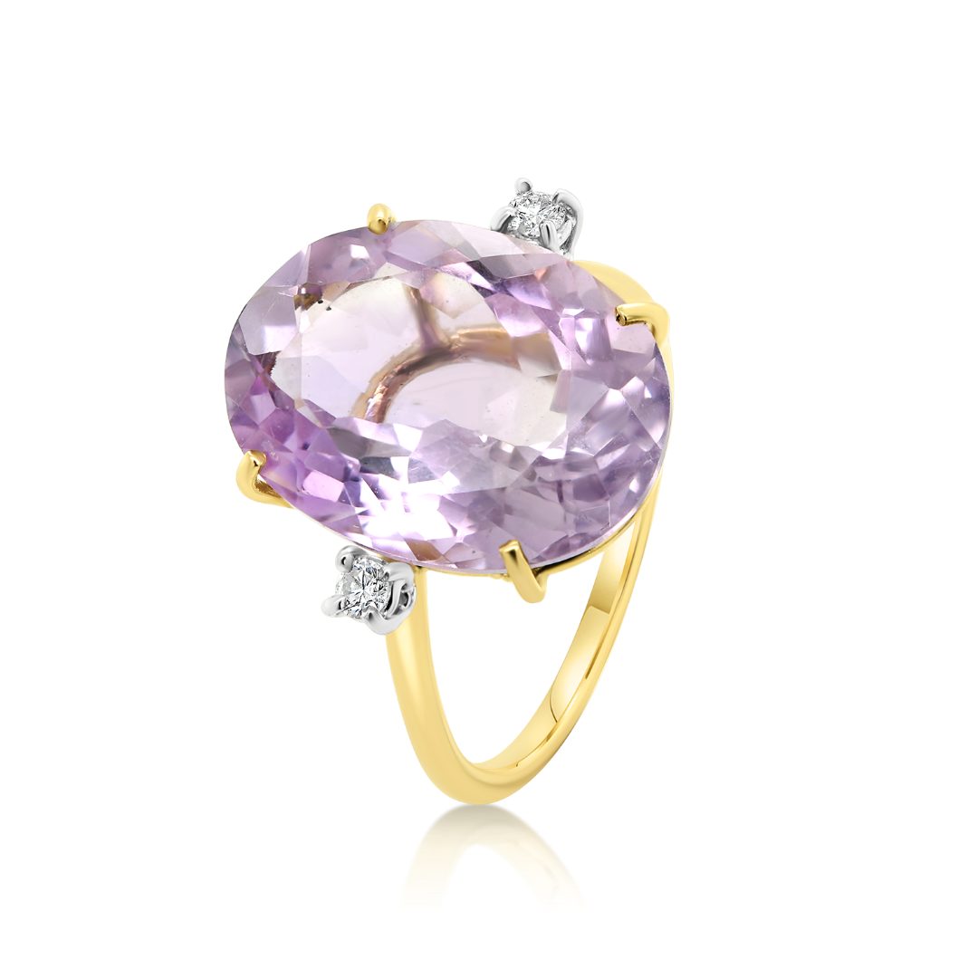 Inel din aur galben de 18K cu Ametist și Diamante naturale