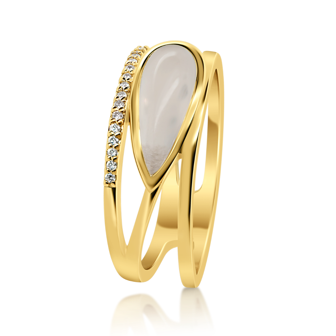 Inel din aur galben de 18K, cu Diamante naturale și Calcedonie