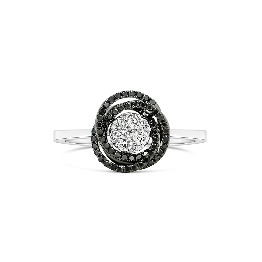 Inel din aur alb de 18K, încrustat cu 9 Diamante naturale incolore și 60 de Diamante negre.