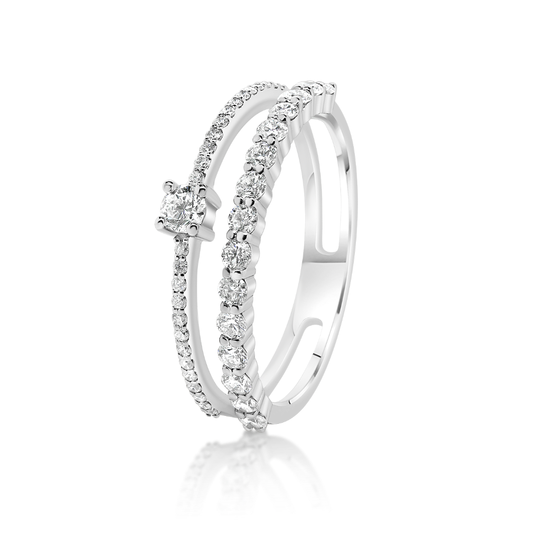 Inel din aur alb de 14K, încrustat cu 42 de Diamante Round cut de 0.46ct.