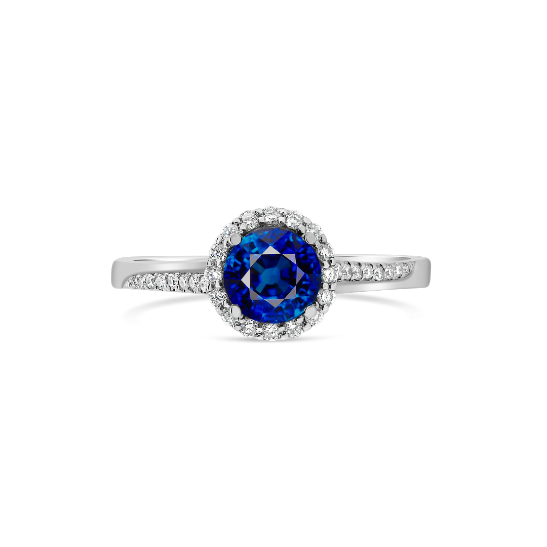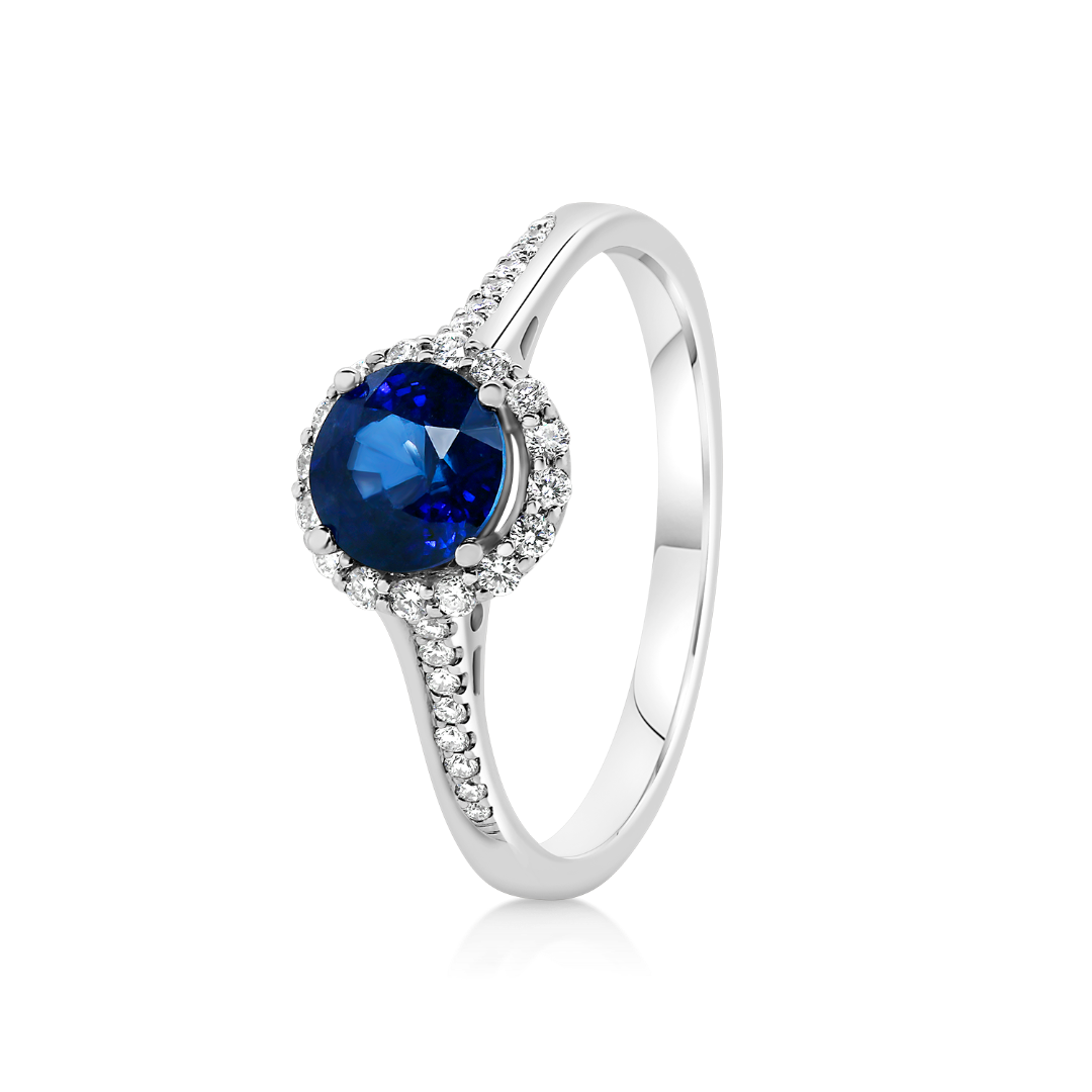 Inel din aur alb de 18K, cu Diamante și Safir albastru