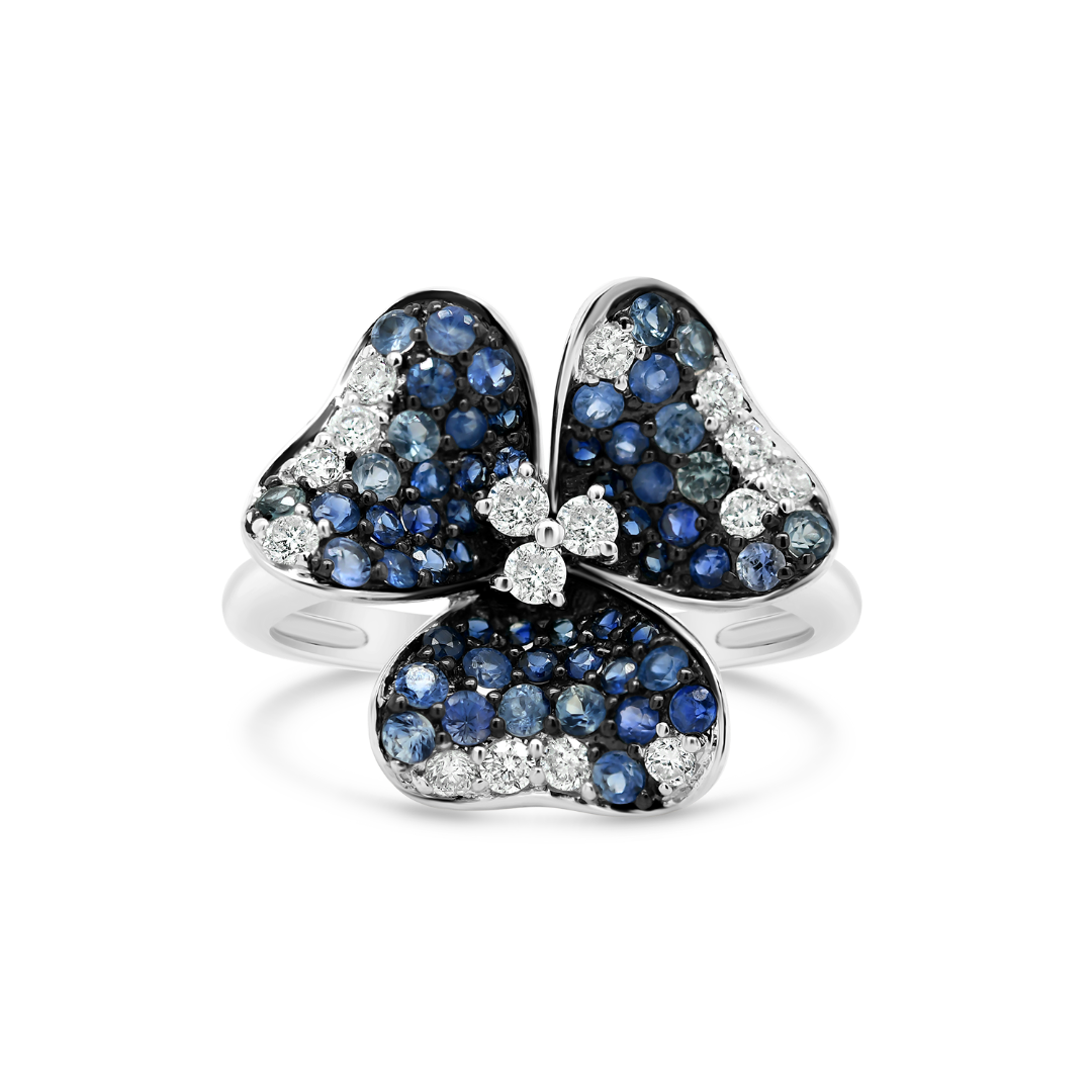 Inel din aur alb de 18K, încrustat cu 55 de Safire de 0.759ct și 16 Diamante Brilliant cut de 0.27ct.