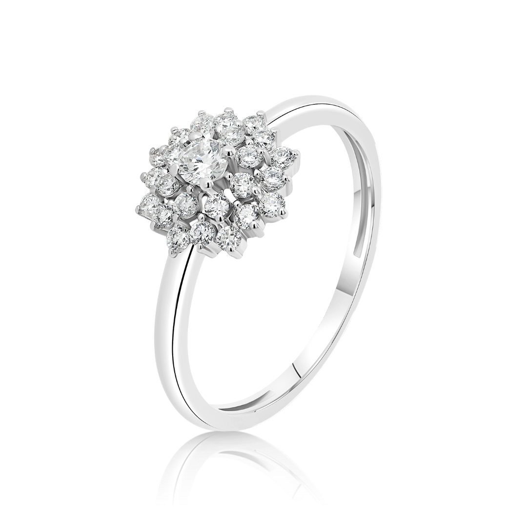Inel din aur alb de 14K cu 25 de Diamante naturale Round Brilliant.