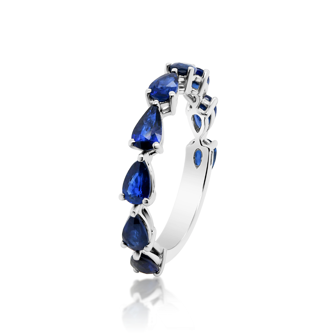 Inel din aur alb de 18K, încrustat cu 9 Safire albastre cu o greutate totală de 2.30ct.