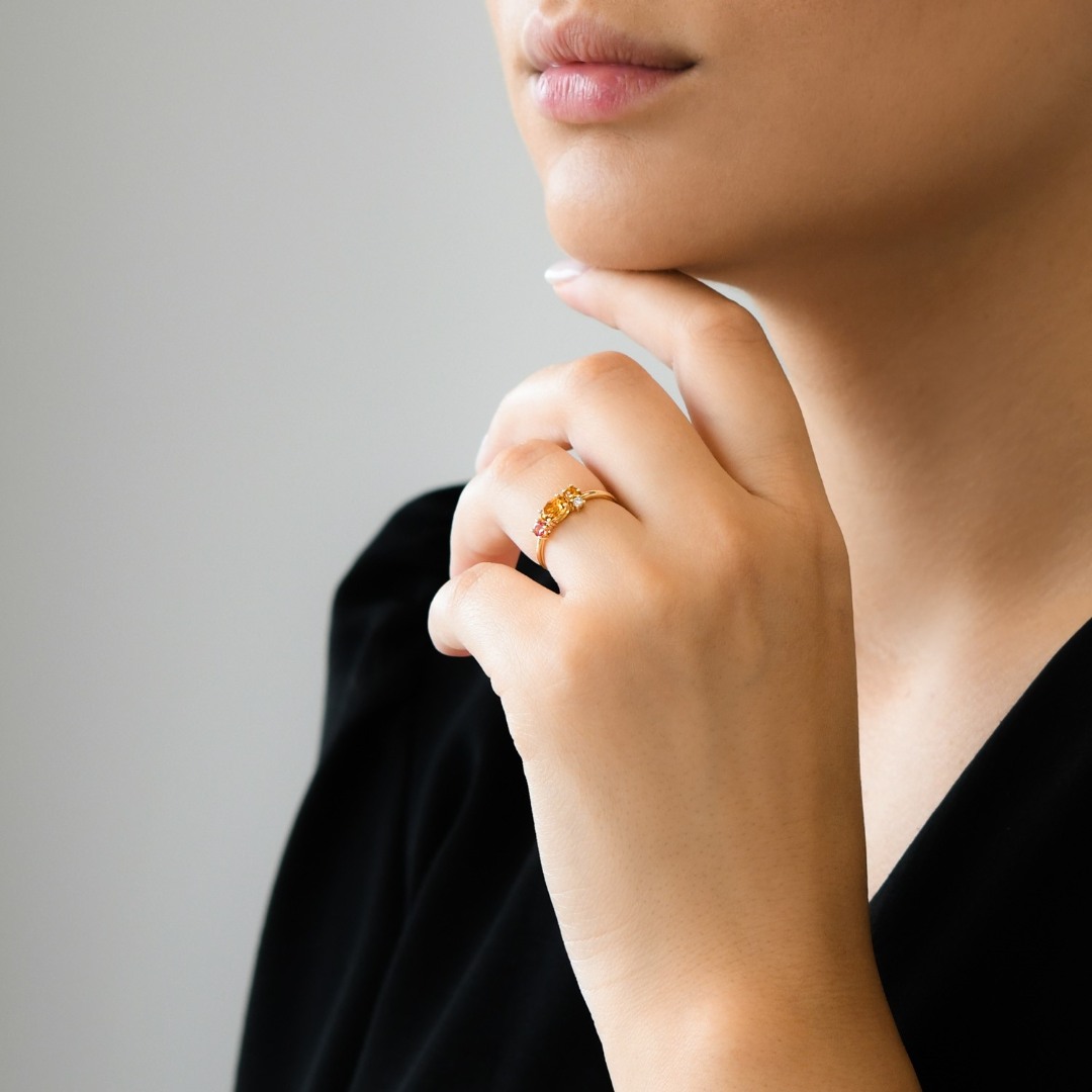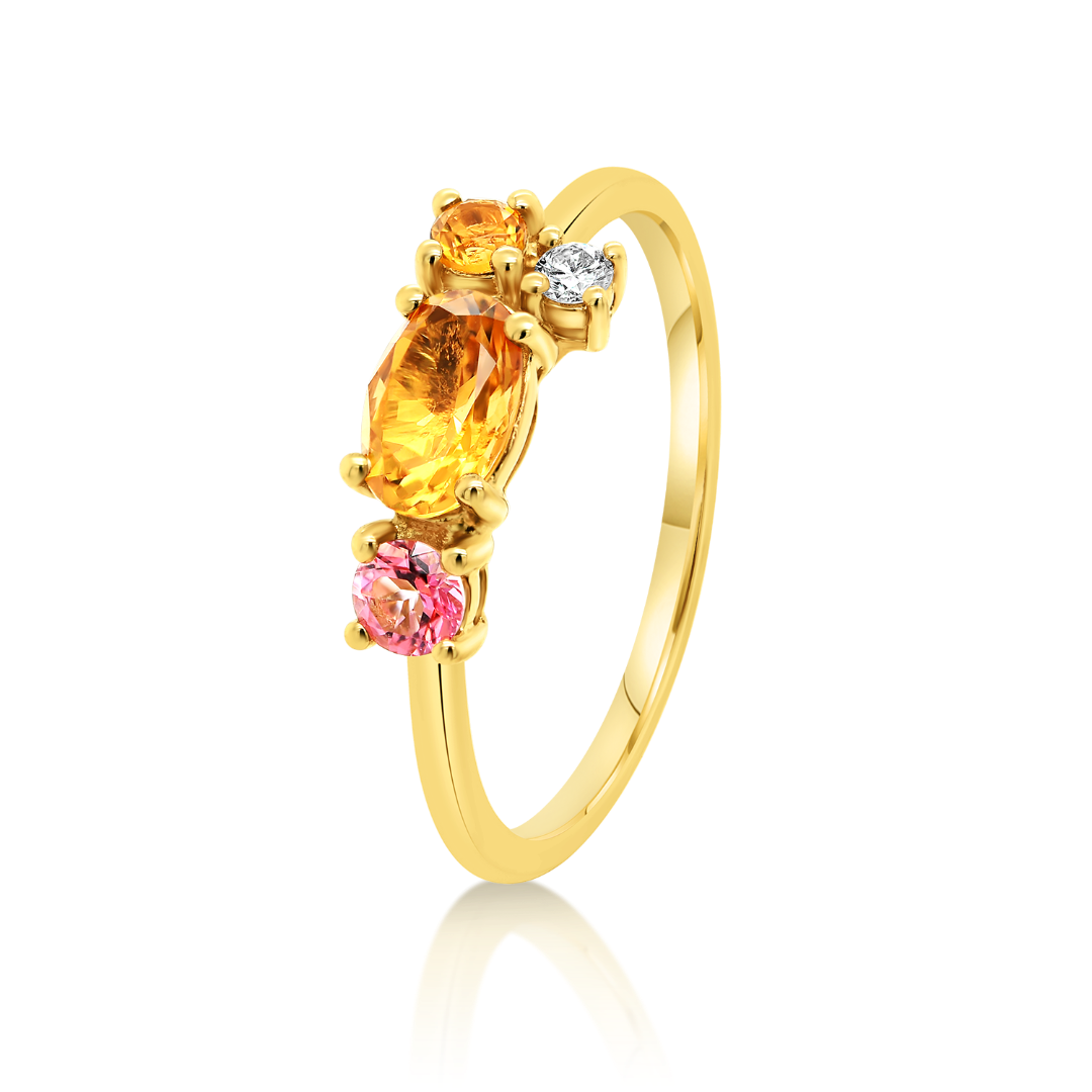 Inel din aur galben de 18K cu Diamant, Citrin și Topaz roz