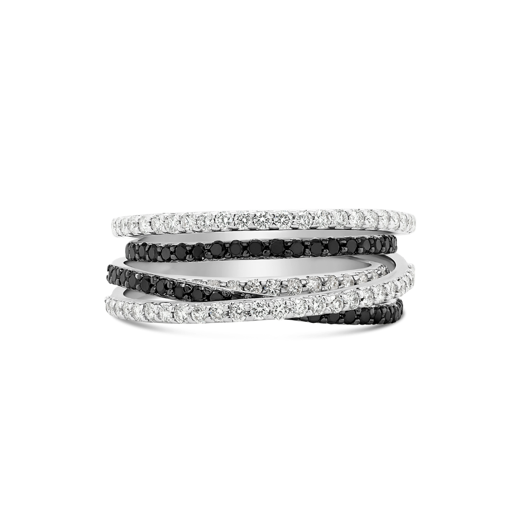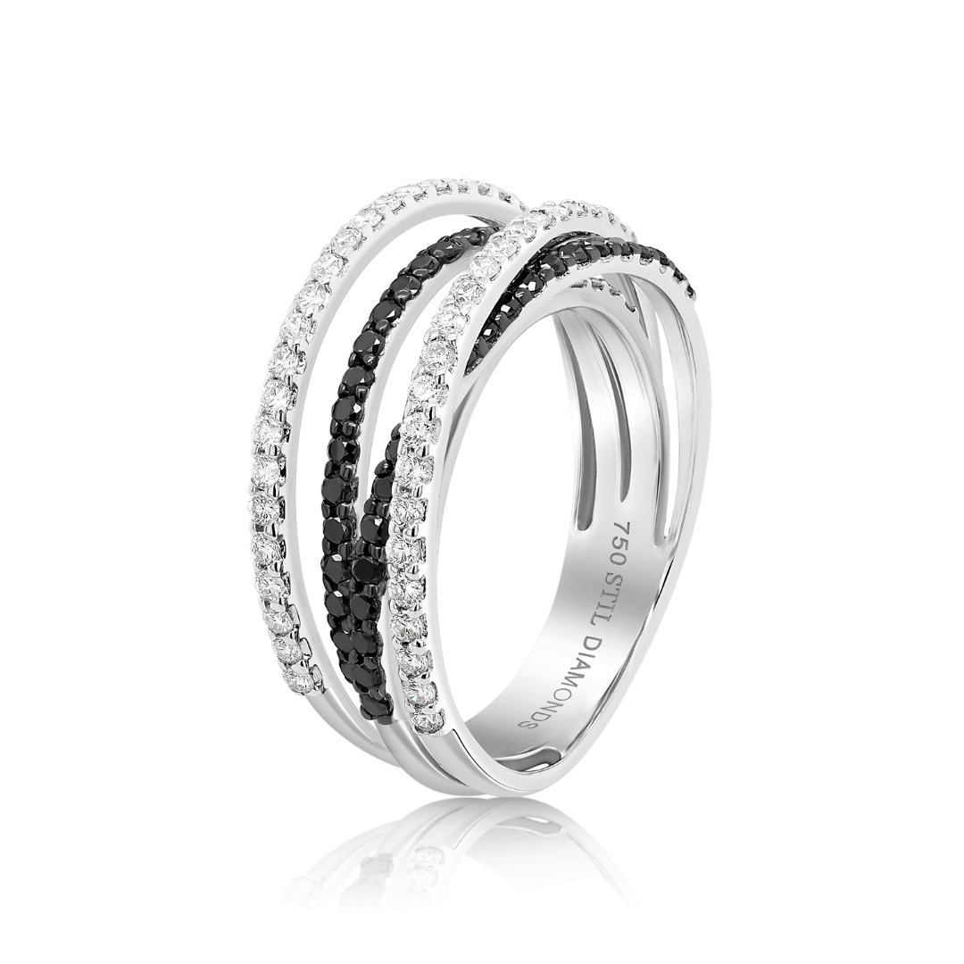 Inel din aur alb de 18K încrustat cu Diamante negre și incolore Brilliant cut.