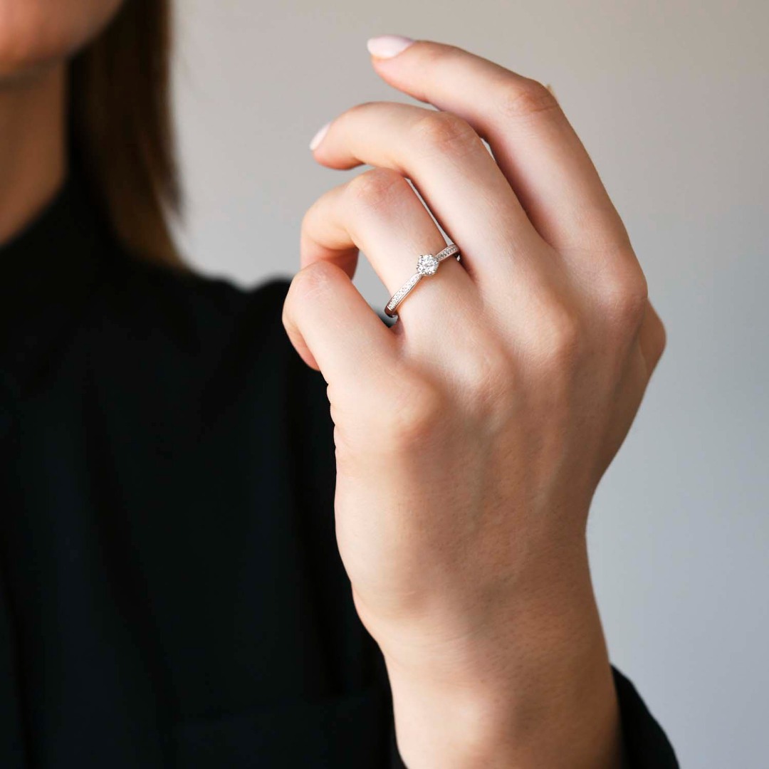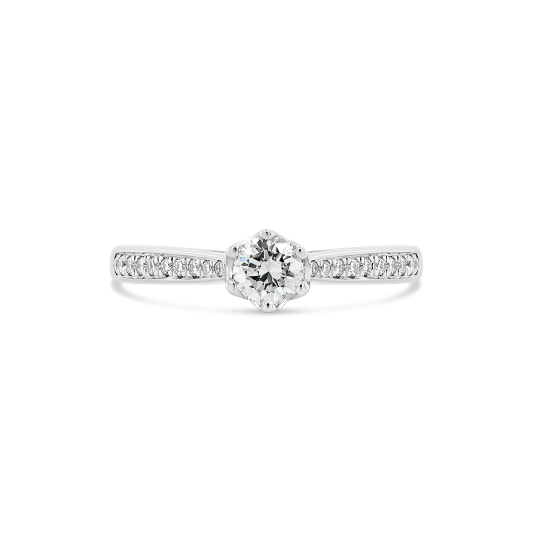 Inel de logodnă din aur alb de 18K cu Diamante naturale Round Brilliant.