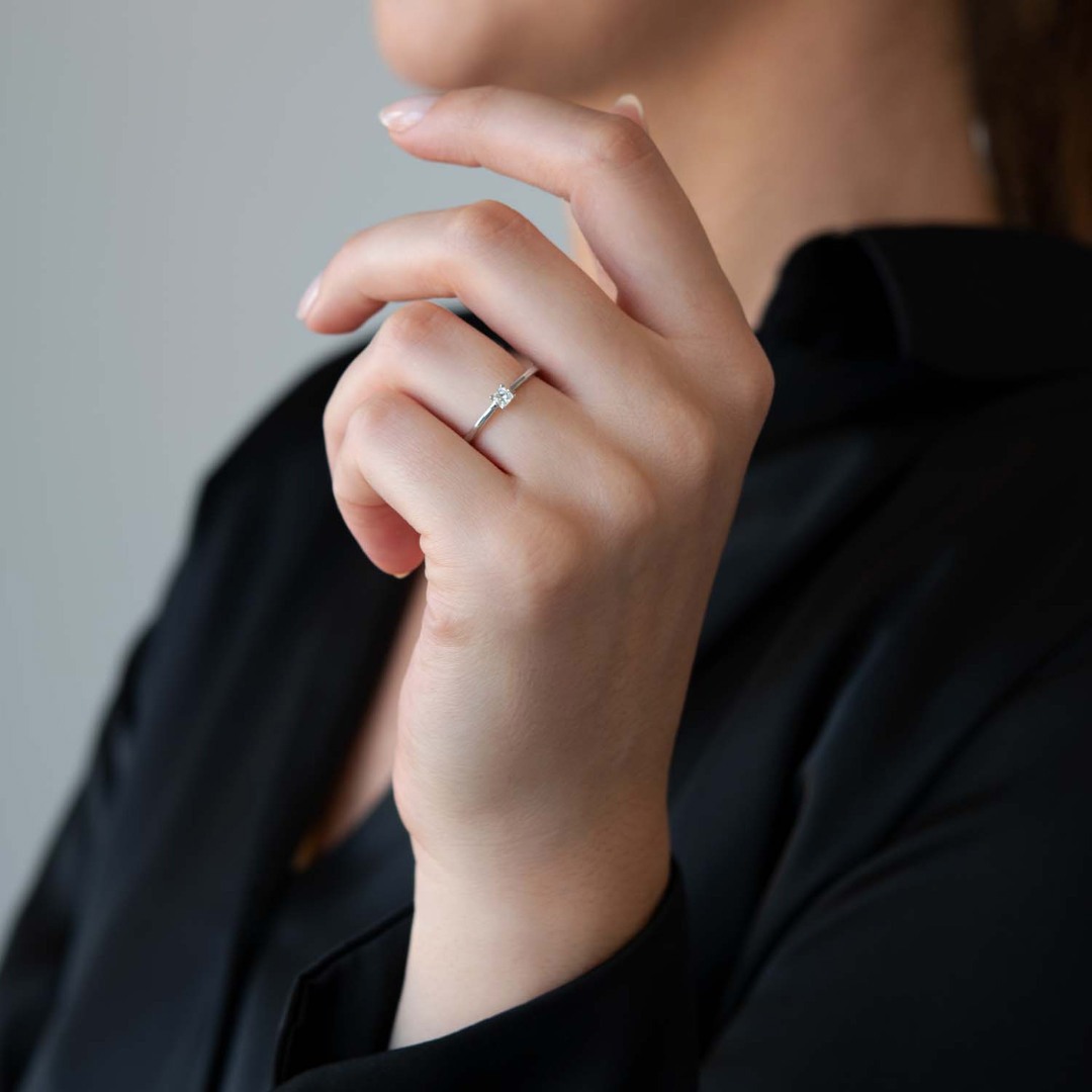 Inel din aur alb de 18K cu Diamant natural