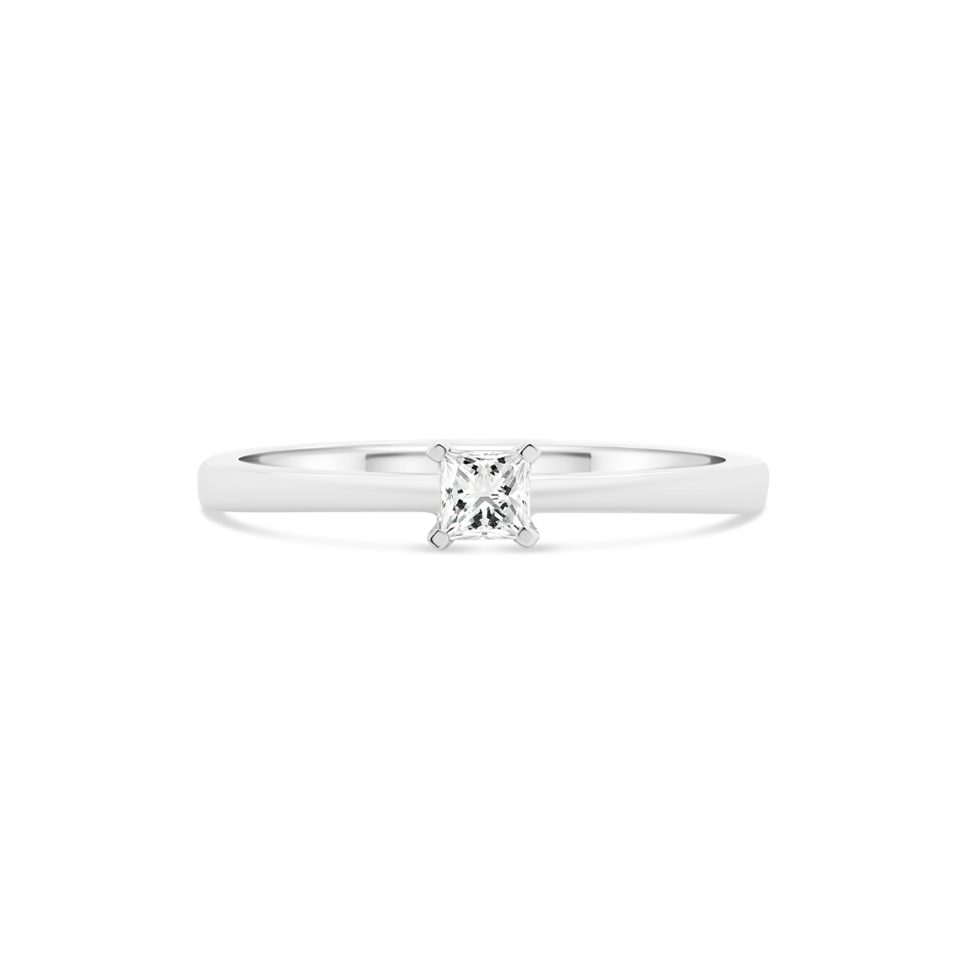 Inel de logodnă din aur alb de 18K cu un Diamant Princess natural.
