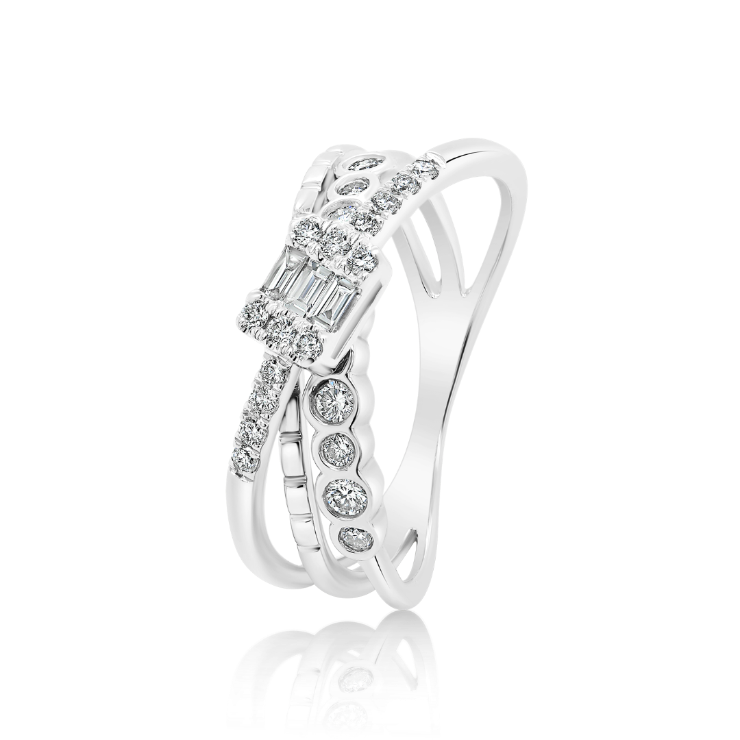 Inel din aur alb de 18K, încrustat cu Diamante Baguette și Round Brilliant cu o greutate totală de 0.37ct.