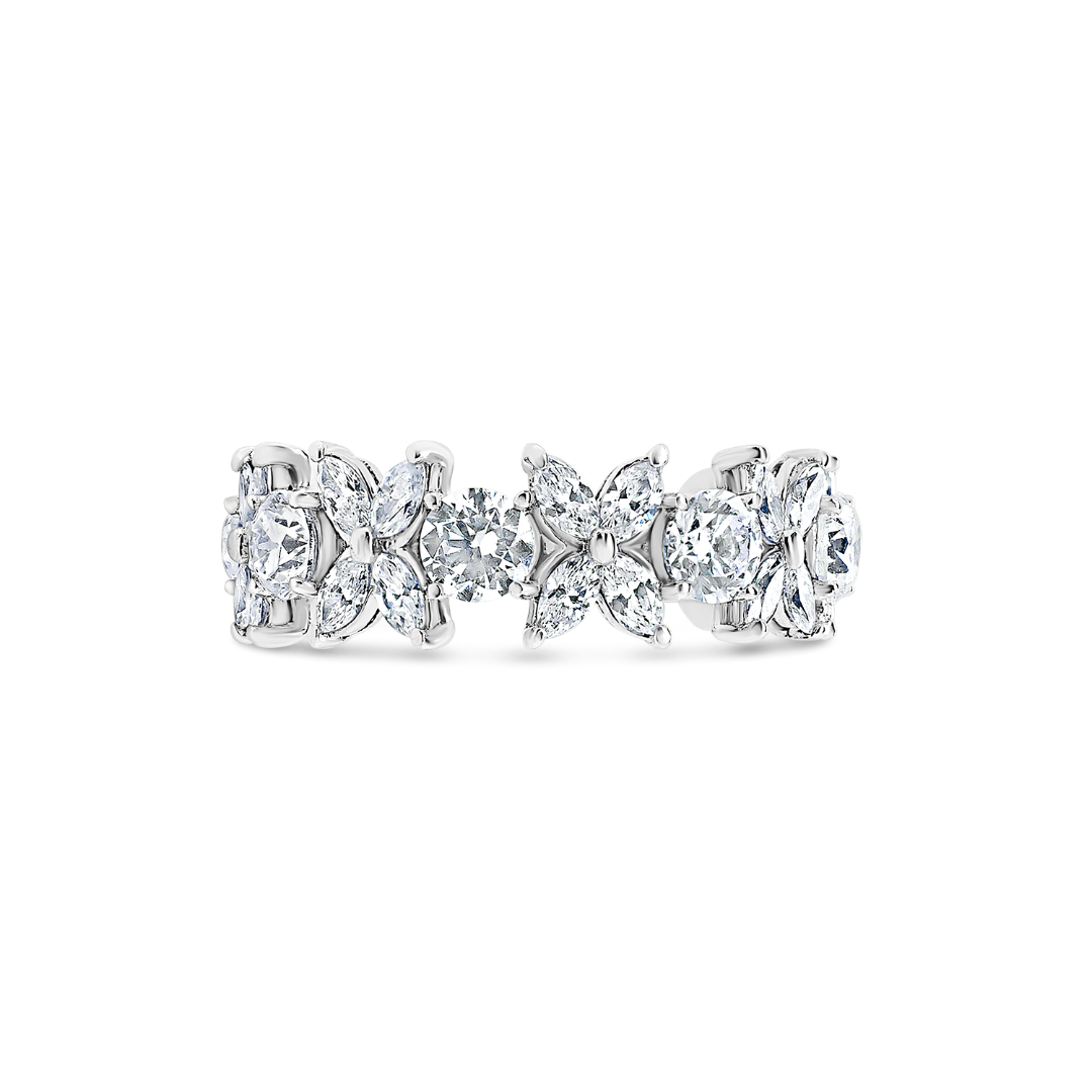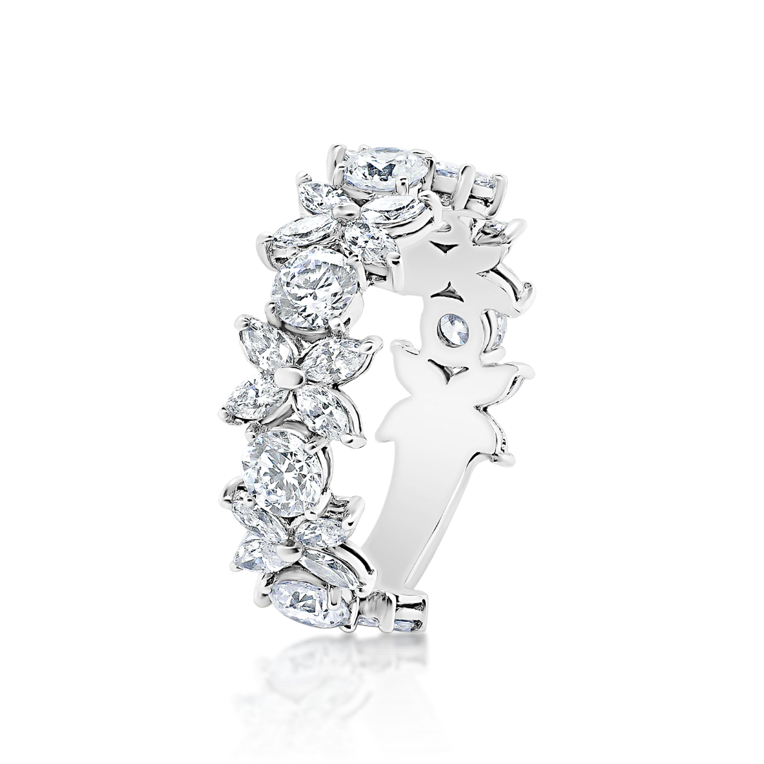 Inel din aur alb de 18K cu 6 Diamante Round Brilliant de 0.66ct și 28 Diamante Marquise de 0.84ct.